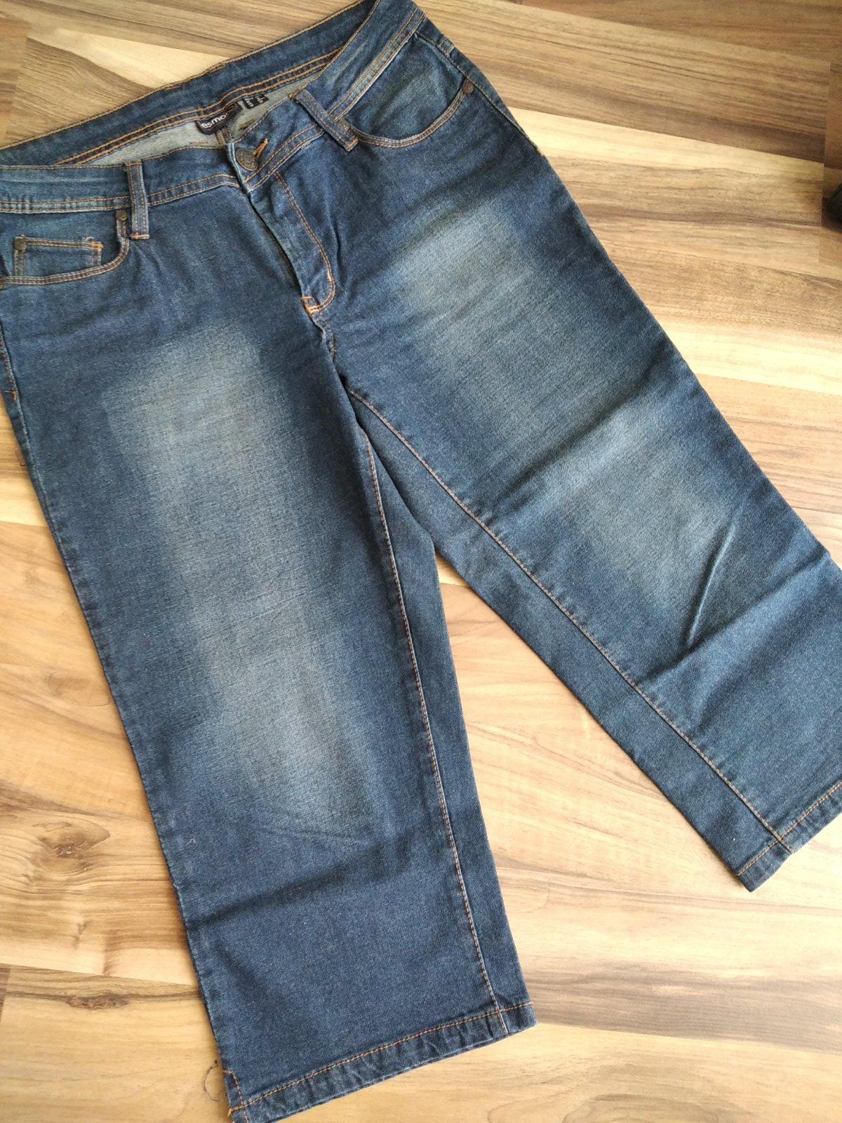 Čierne riflové 3/4 nohavice, dĺžka 70 cm, pas 37-39 cm. Malo nosene.