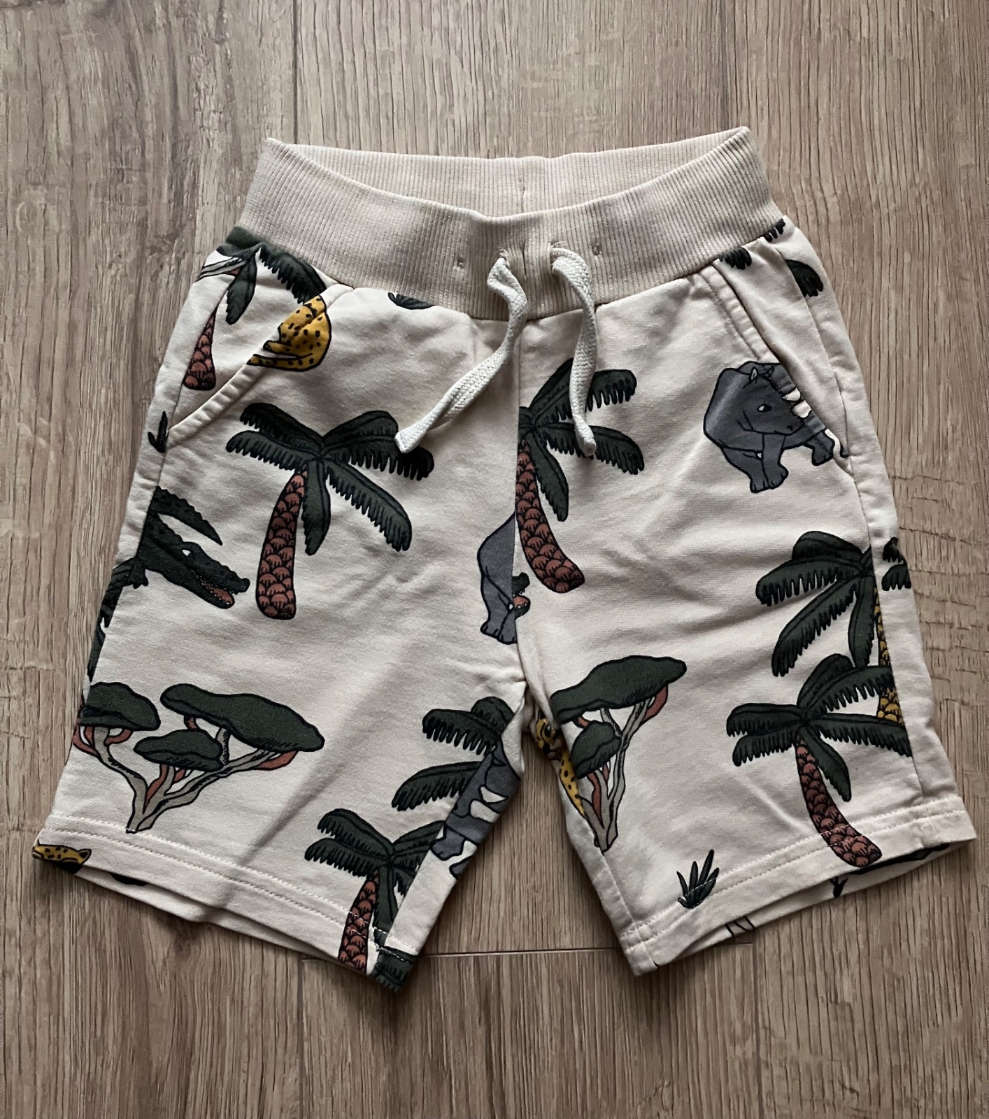 Kraťasy nosené menej v bezchybnom stave. Veľkosť 98-104, regulácia v páse.