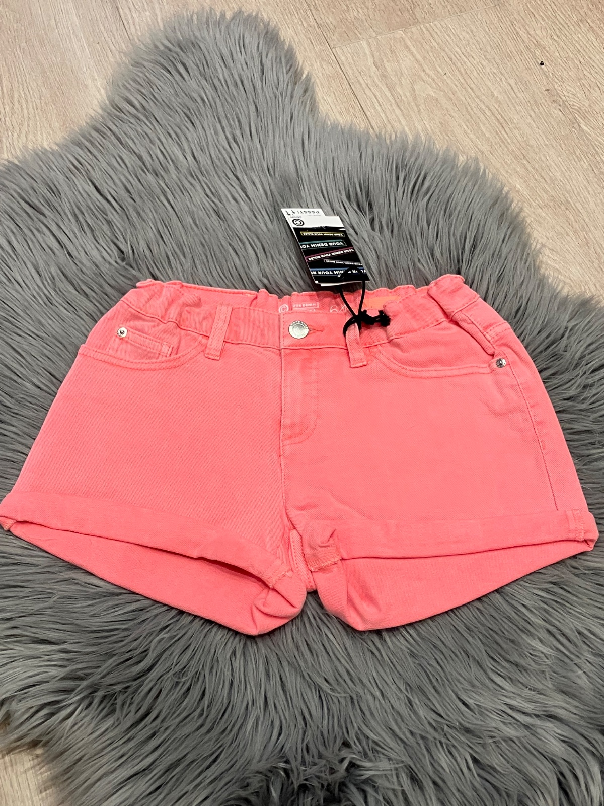 Dievčenské rifľové šortky neónovo ružové (164)