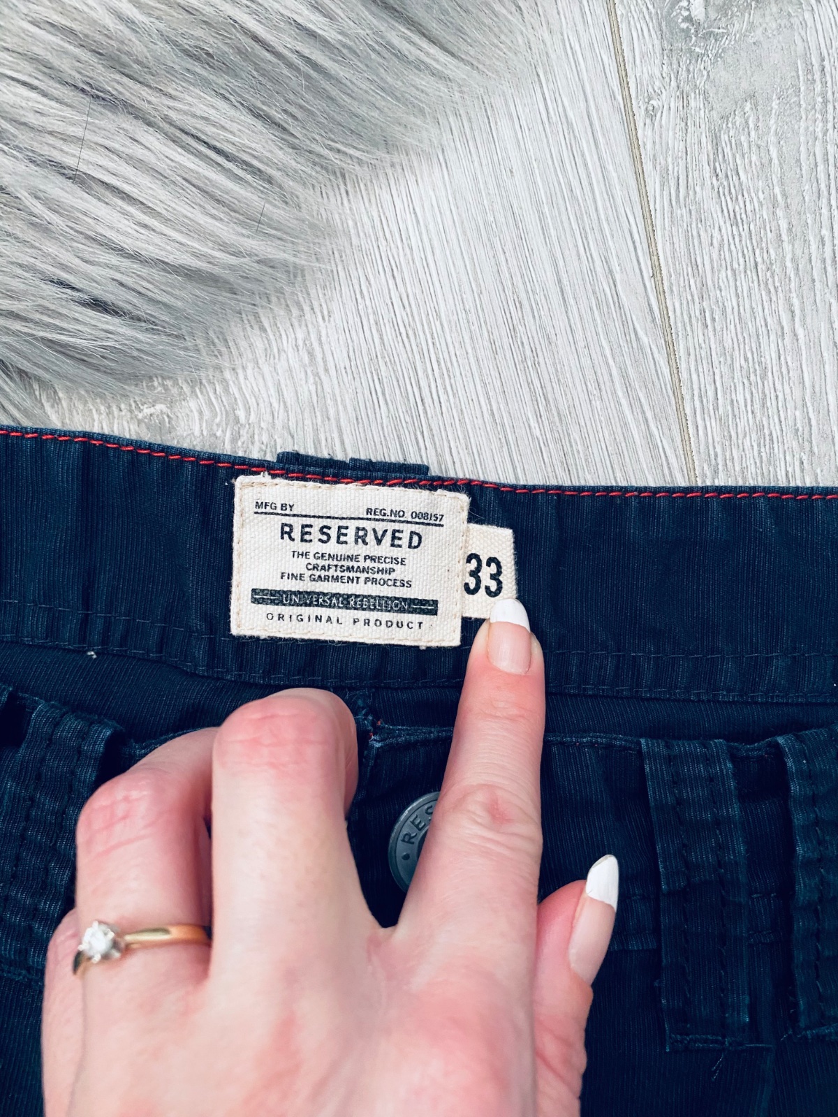 Značkové letné nohavice Reserved čiernomodrej farby, vhodné na každý deň, nohavice možno ešte vylomiť na kratšiu dĺžku, nosené v 100% stave, veľkosť .33/ M . Rozmery : pás : 2x44cm , dĺžka 50cm.