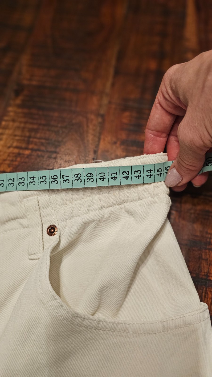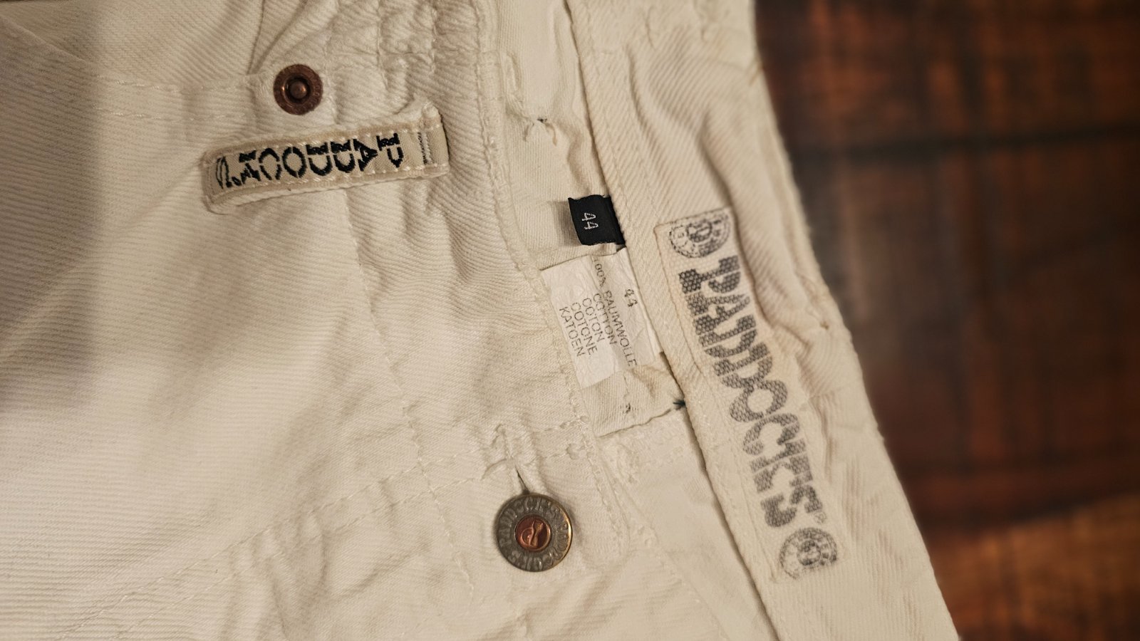 Stav dobry. Ma zavadu dierky na zadnom dielw nad vreckami. Zakryje tricko...