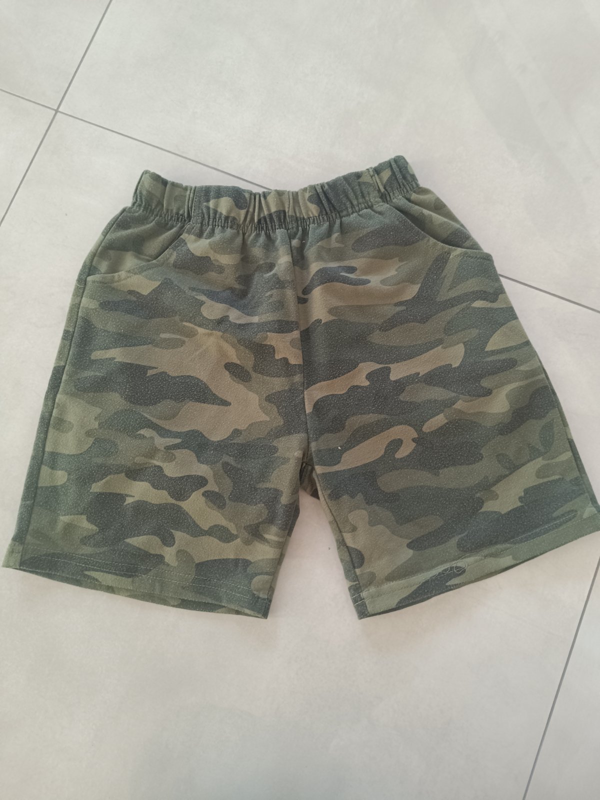 Maskáčové kraťase , materiál je teplákovina. Sú na nich minižmolky. Sú v bezchybnom stave. Dĺžka 41 cm, pás 31 cm.