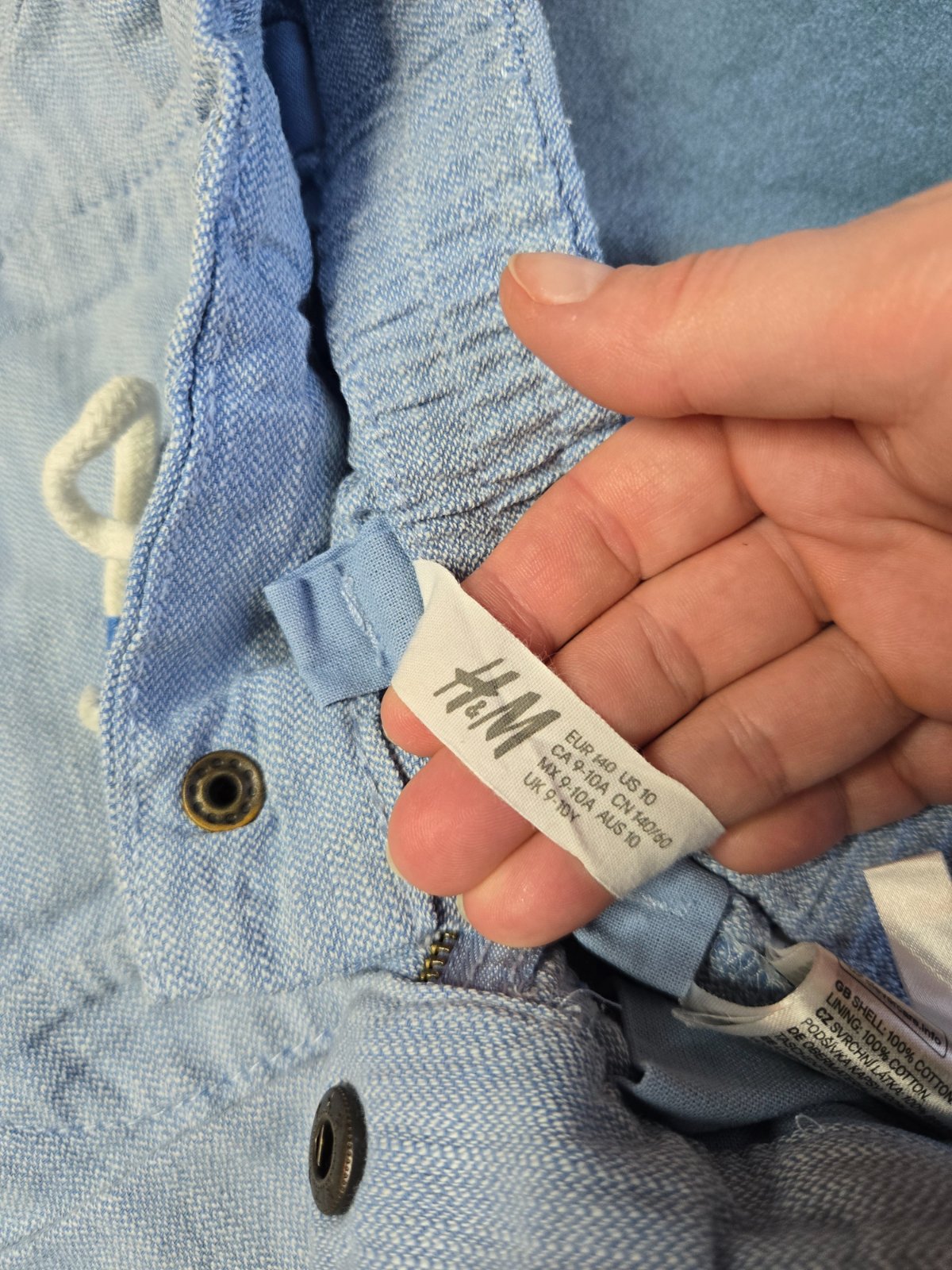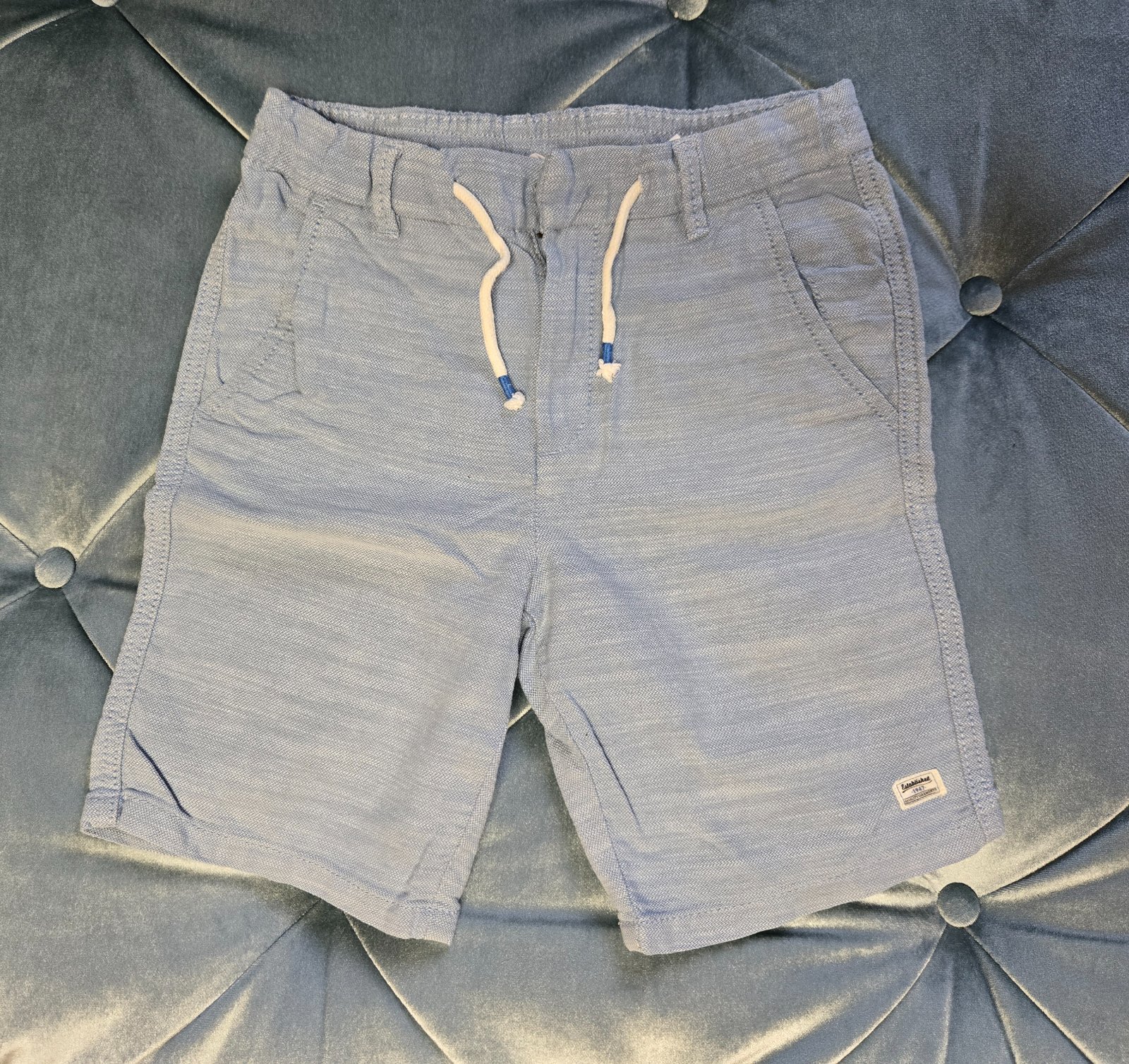 Krásne svetlomodré kraťasy, 100% stav, 100% bavlna, top stav. Majú šnúrku, 3 vrecká. Sú od 9 rokov a rozmery:pás 2x34cm, boky 2x41cm, dl.40cm.