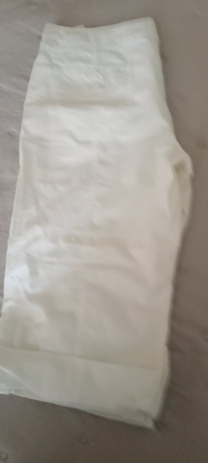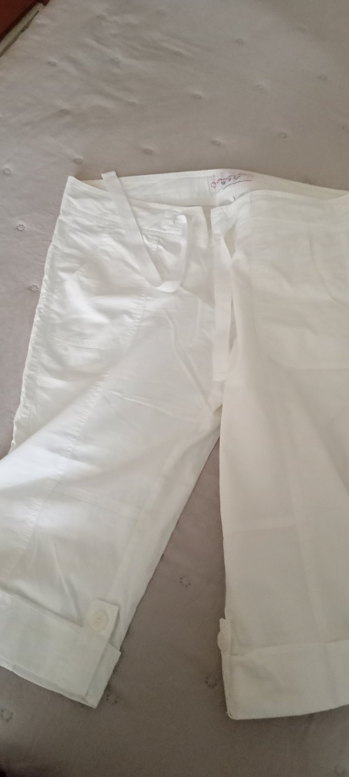 Predám biele letné nohavice pod kolená, minimálne nosené, ako nové, vpredu 2 vačky, vzadu falošné. V prípade potreby premeriam.