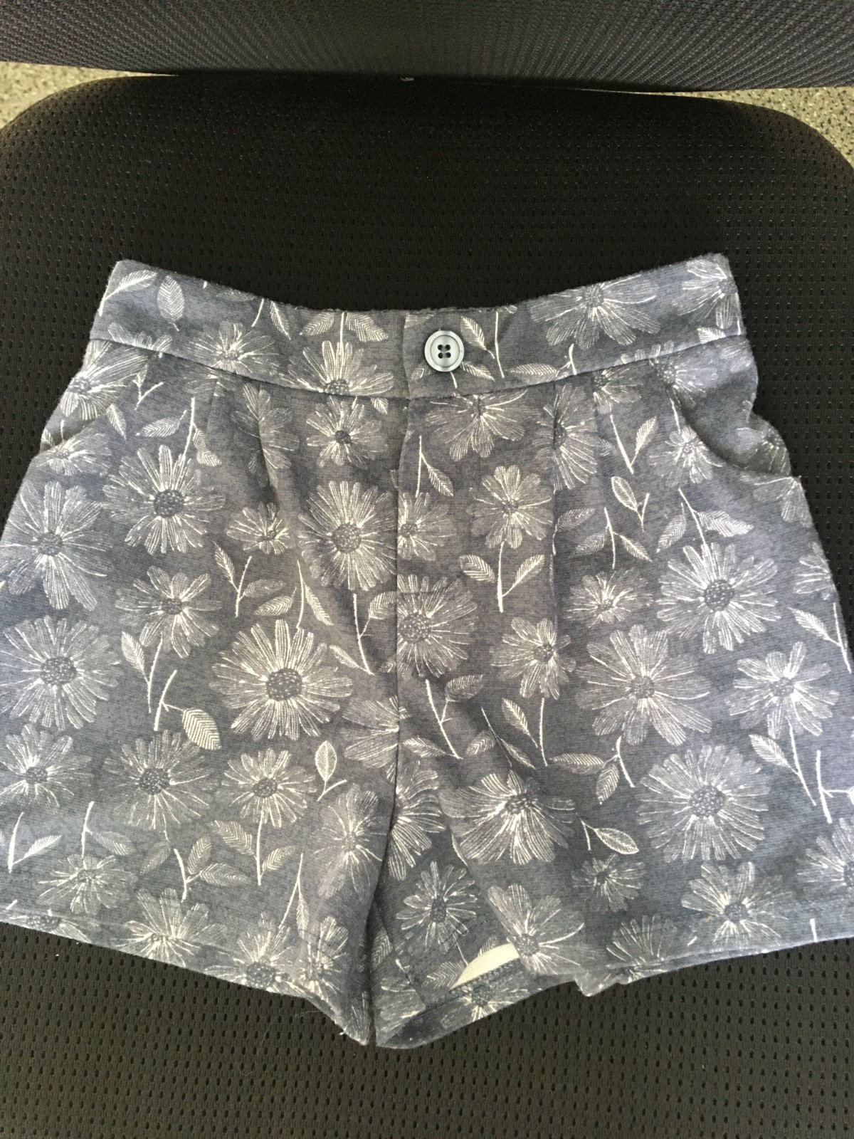 Kraťasky z hrubšej látky s všitými vreckami, vzadu s gumičkou, dĺžka na boku 27cm, pás bez natiahnutia 56cm.