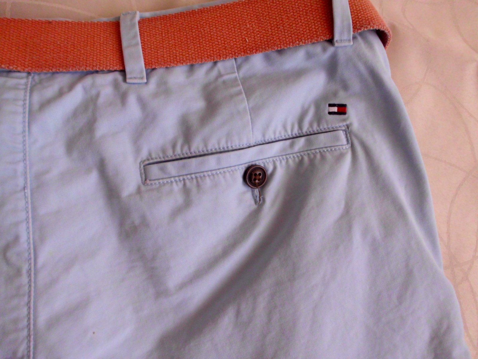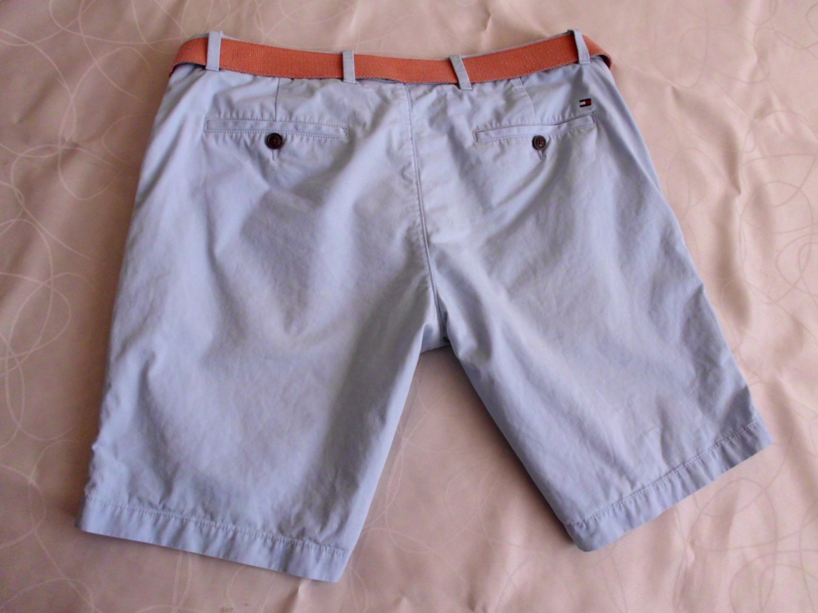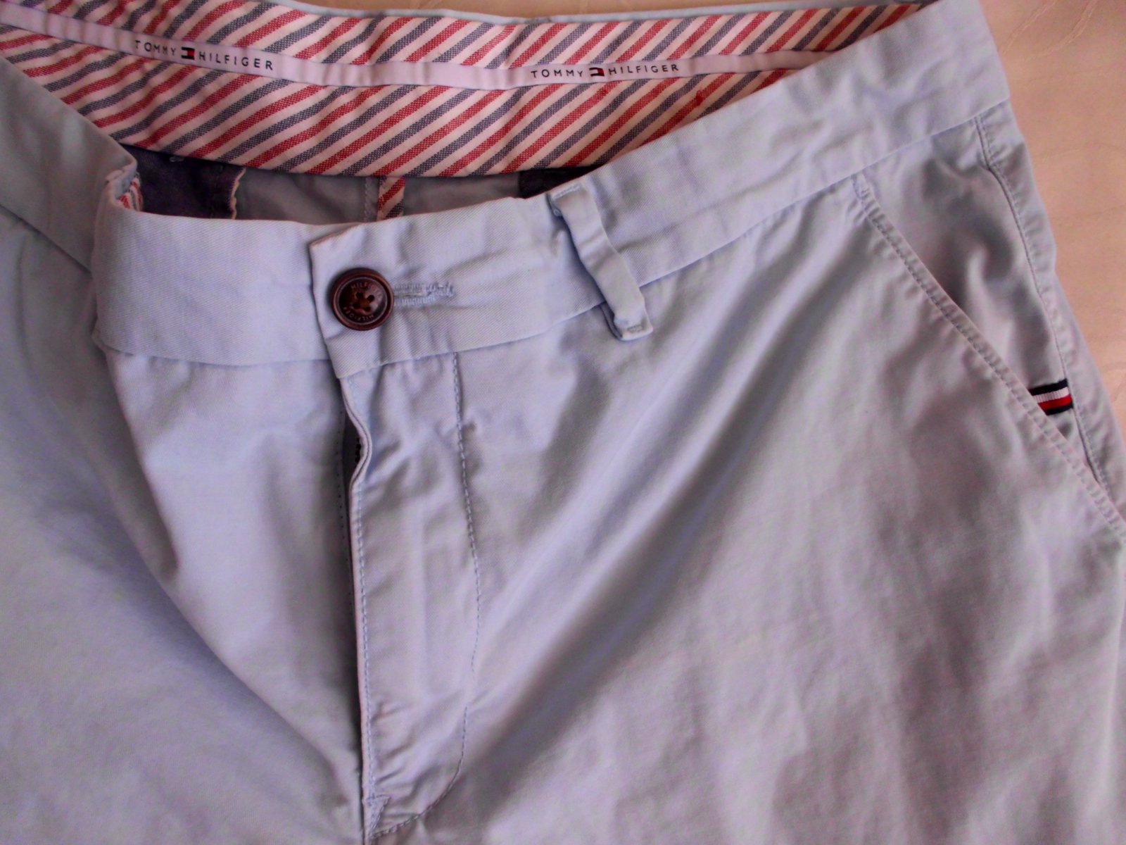 Predám pánske krátke chino nohavice Tommy Hilfiger v.L ,4 vrecká, pás 48 cm, predný sed 26 cm, dĺžka 47 cm, šírka-spodok nohavice 25,5 cm, príjemný materiál, farba pekná jemná bledo modrá , top stav