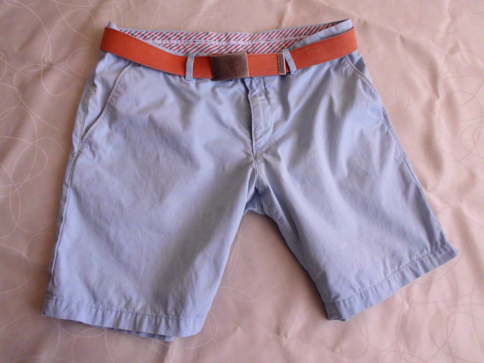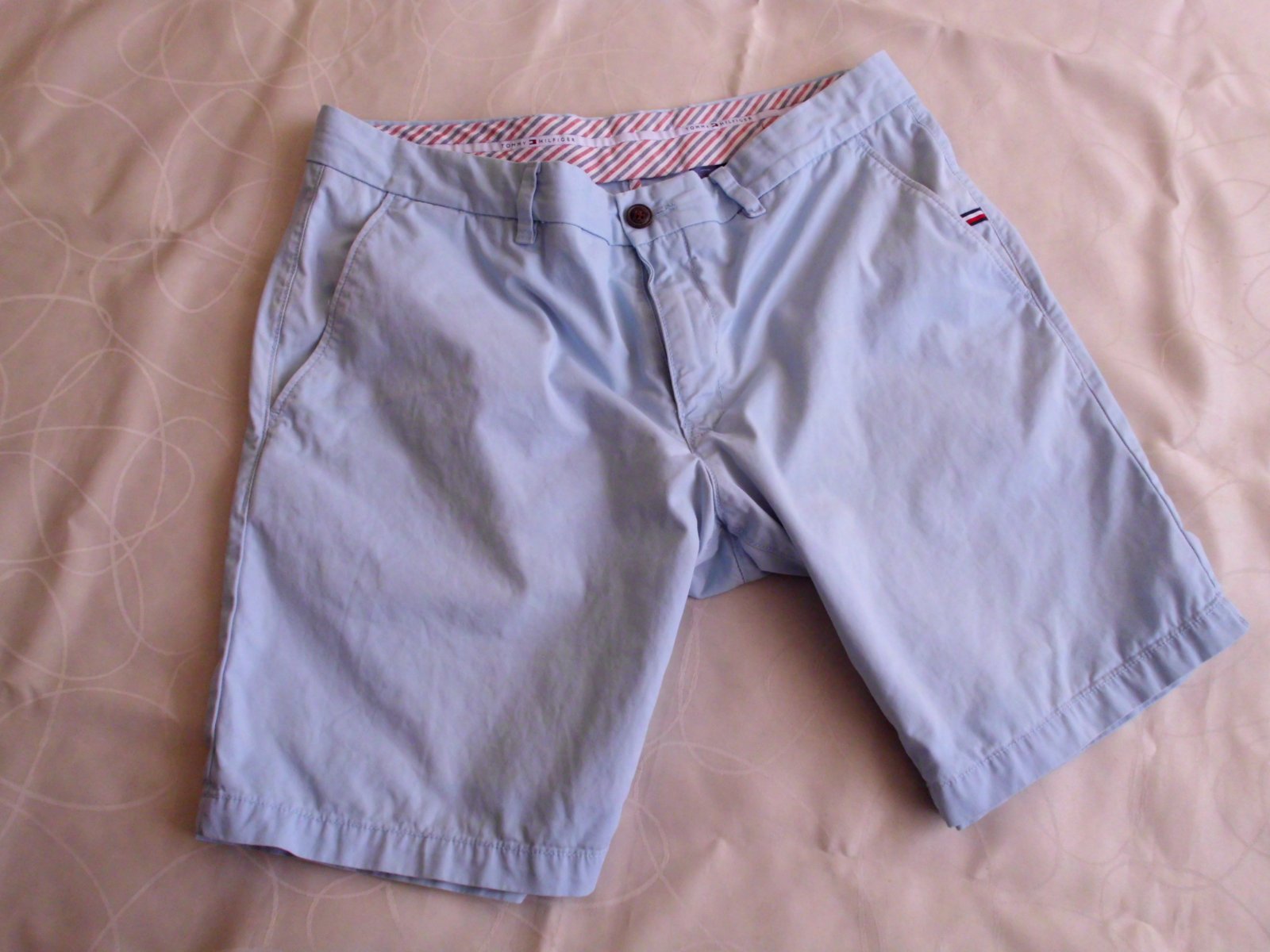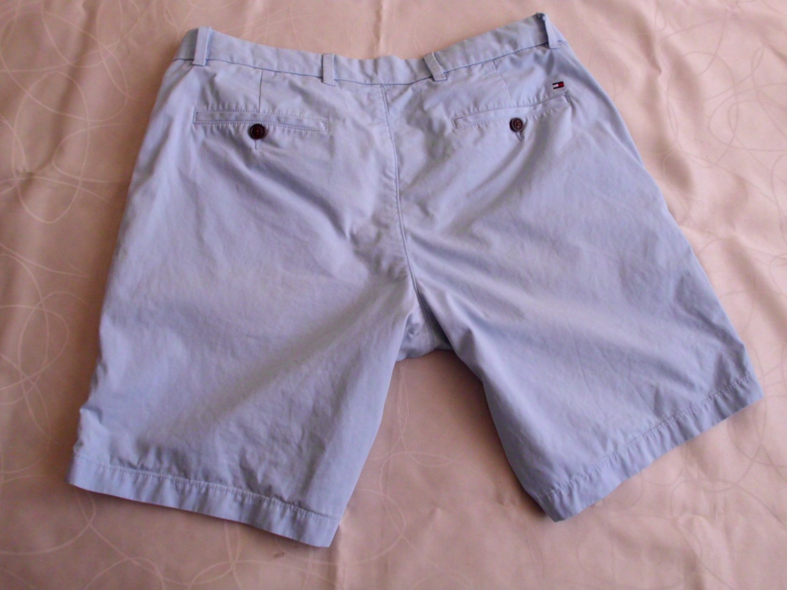 Predám pánske krátke chino nohavice Tommy Hilfiger v.L ,4 vrecká, pás 48 cm, predný sed 26 cm, dĺžka 47 cm, šírka-spodok nohavice 25,5 cm, príjemný materiál, farba pekná jemná bledo modrá , top stav