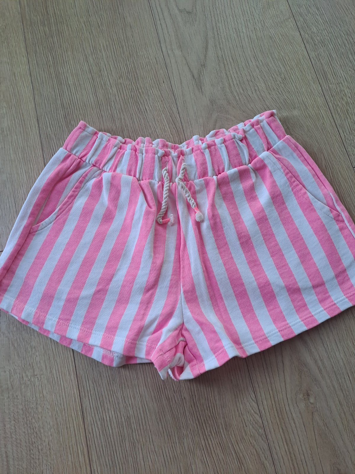 dievčenské sýto ružové šortky v páse na gumu + šnúrka na zaviazanie, vrecká, príjemný kvalitný materiál, zloženie: bavlna, stav: dobrý, nosený, značka: Zara, uvádzaná veľkosť na štítku 13-14 rokov...