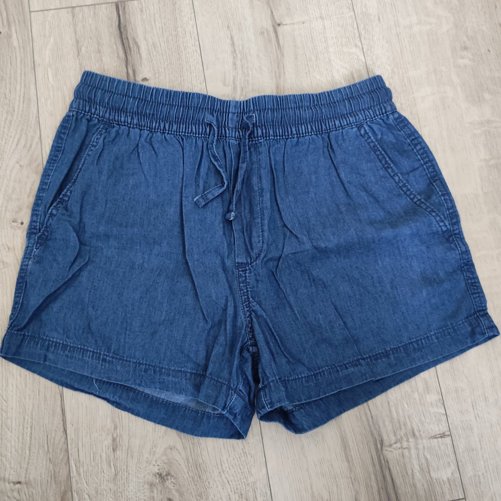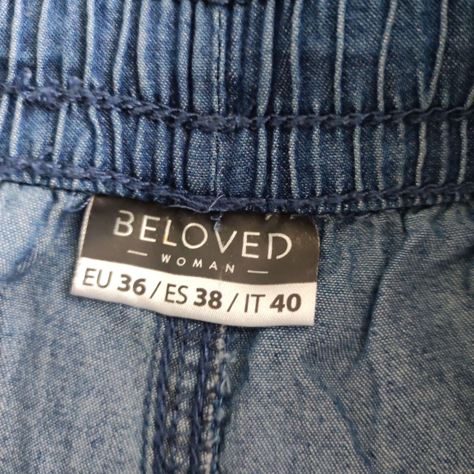 Oblečené asi dvakrát,žiadne poškodenia,je to tenšia riflovina,príjemná na leto,dĺžka 32,5 cm,pásov kľude 36 krát dva ale povolí ešte dosť