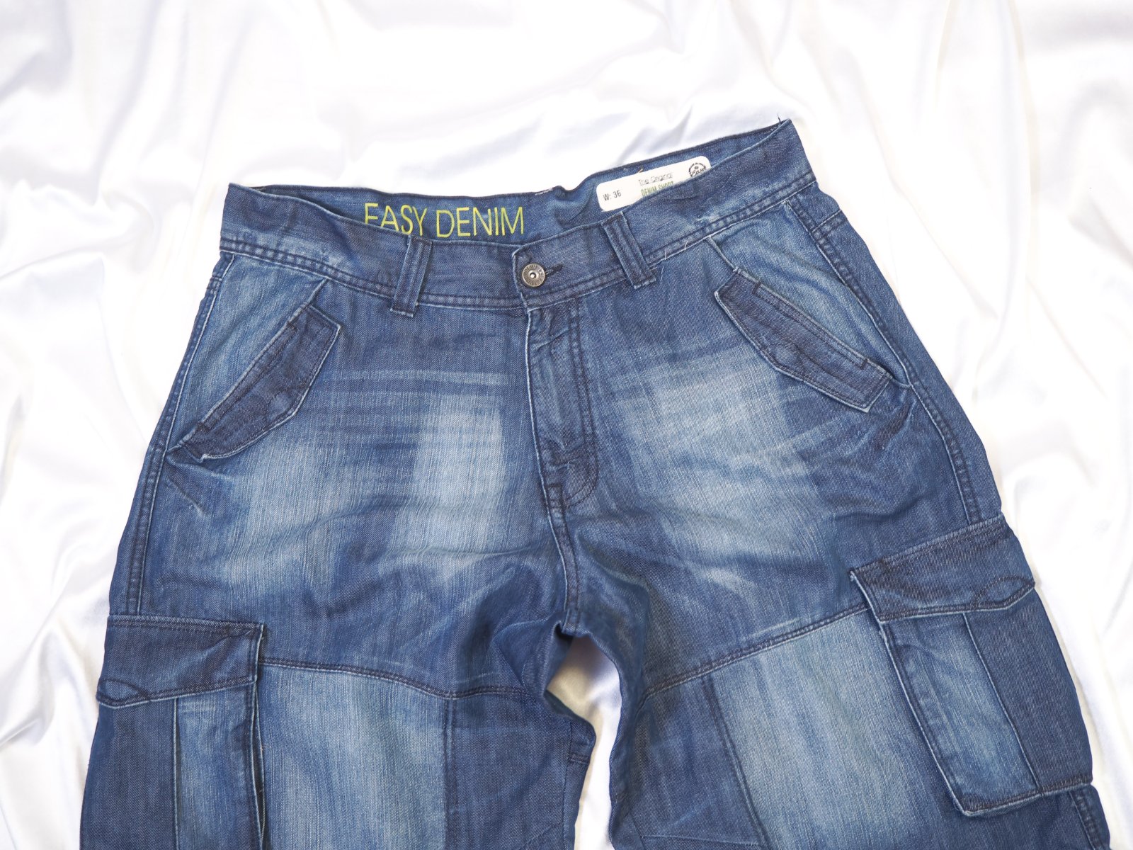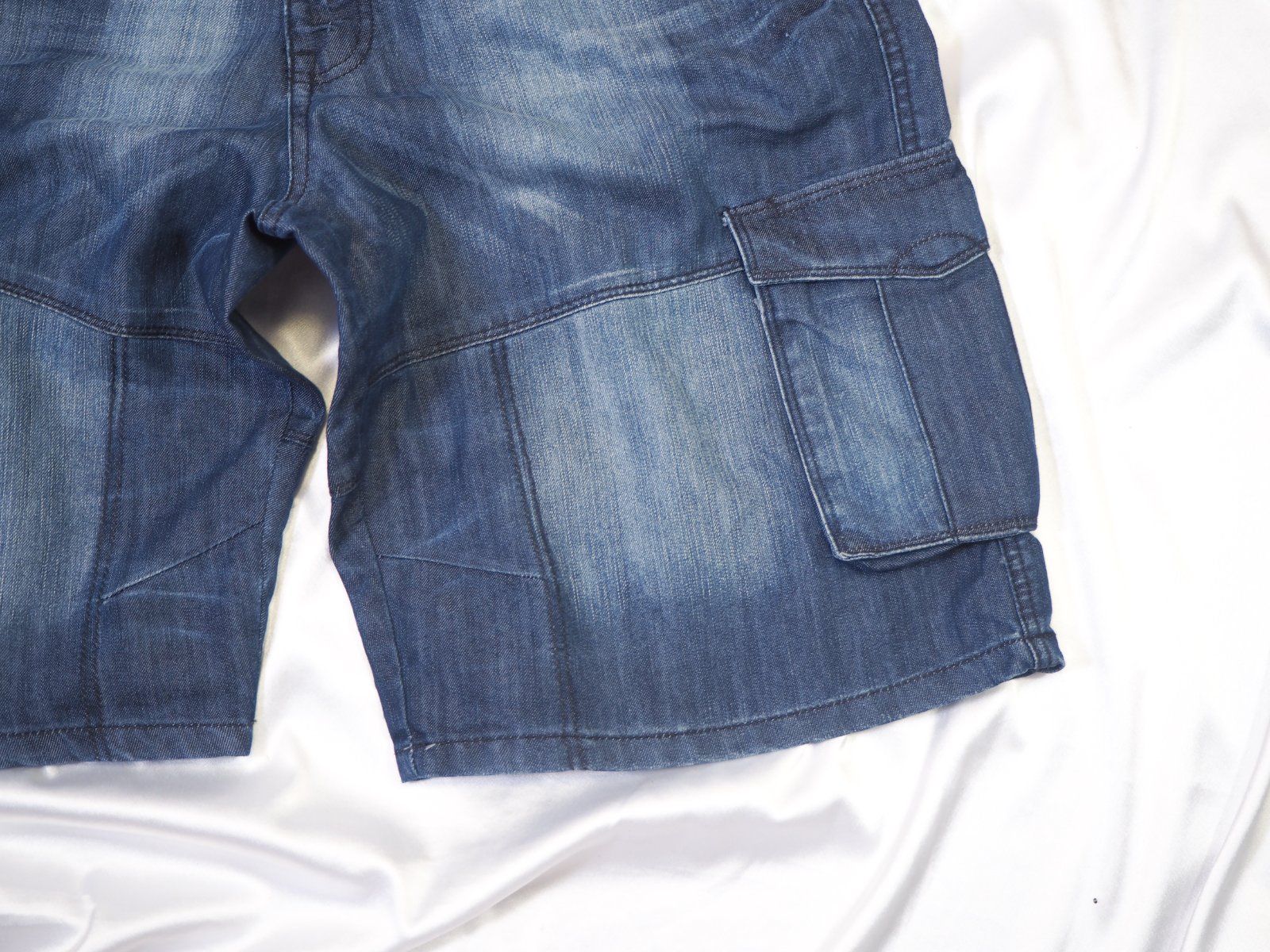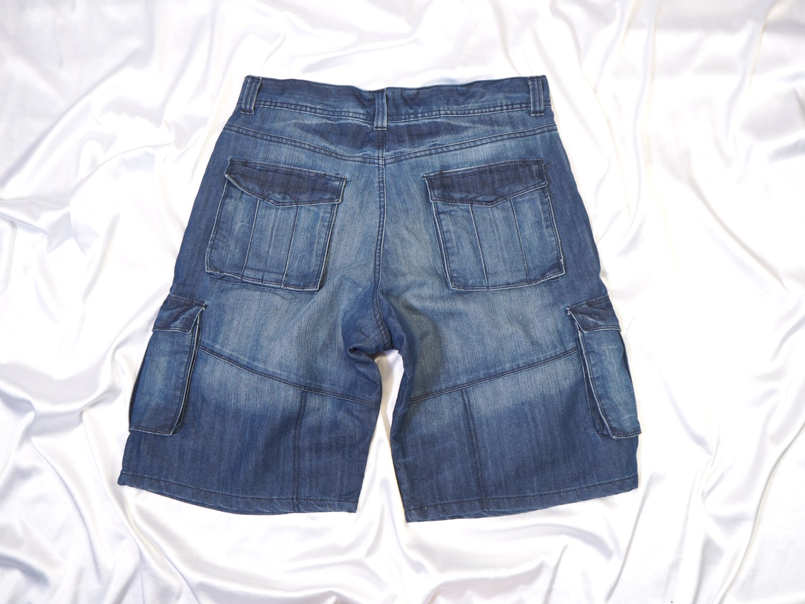 Kvalitné riflové kraťasy, zapínanie na zips a gombík, všité vrecká, našité vrecká na stehnách, materiál 70% bavlna, 30% polyester, super stav.