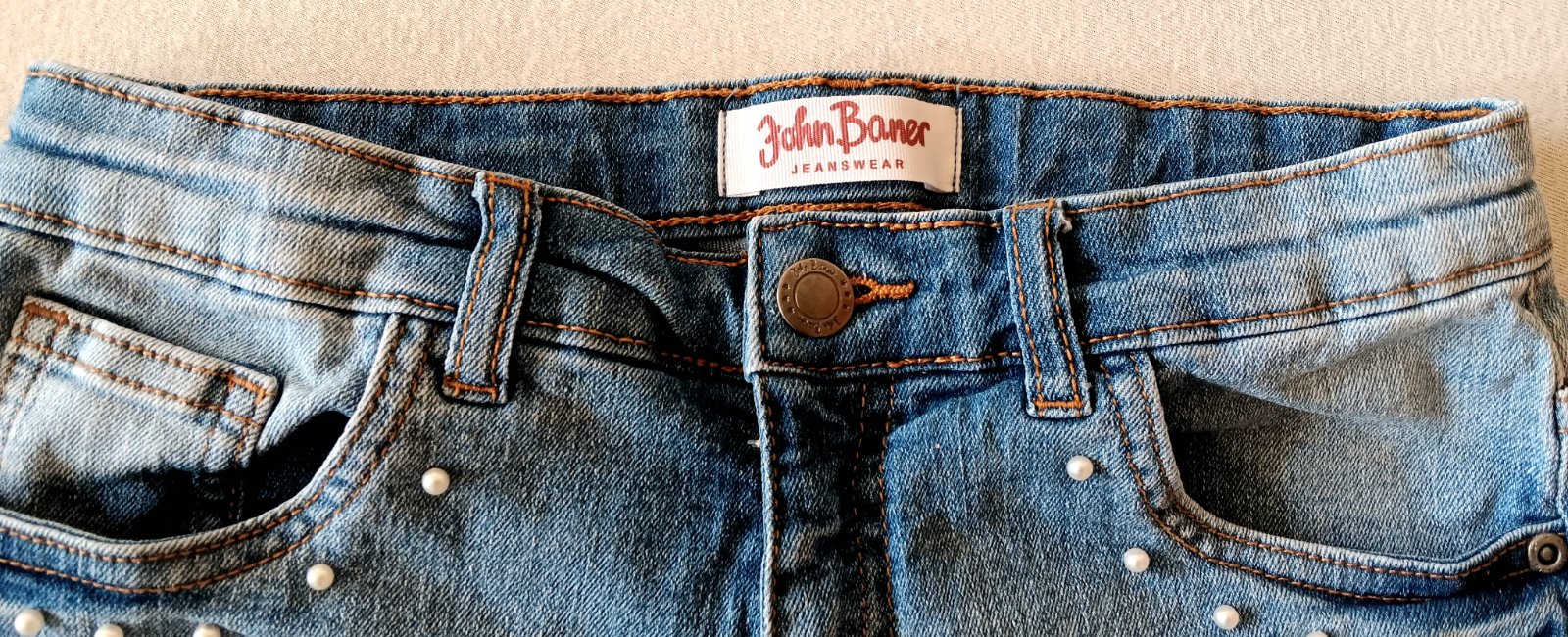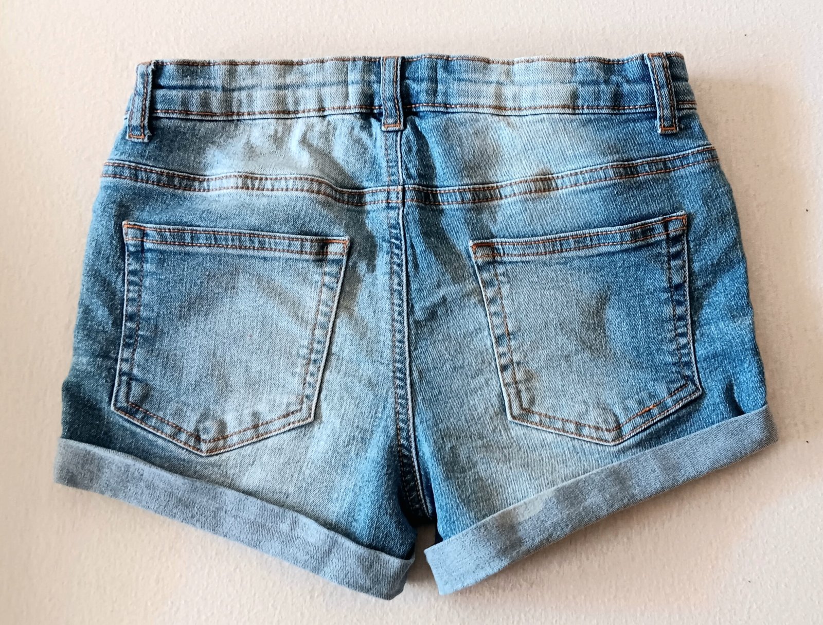 Kamarátka doniesla....predám riflové kraťasy kupované v Bonprix.sk....vpredu aplikácia s perličkami, zapínanie na zips a gombičku a 2 funkčné vrecká....veľkosť 158....podľa mňa menšie, ale držte sa prosím mier....vzadu tiež 2 funkčné vrecká...podohnuté...na jednej strane vzadu malý biely pás/vid 4 foto/,nič hrozné...pútka na opasok...81%bavlna,17%polyester, 2%elastan....Šírka 32-34cm....vonkajšia dlžka 23cm.....cena plus poštovné