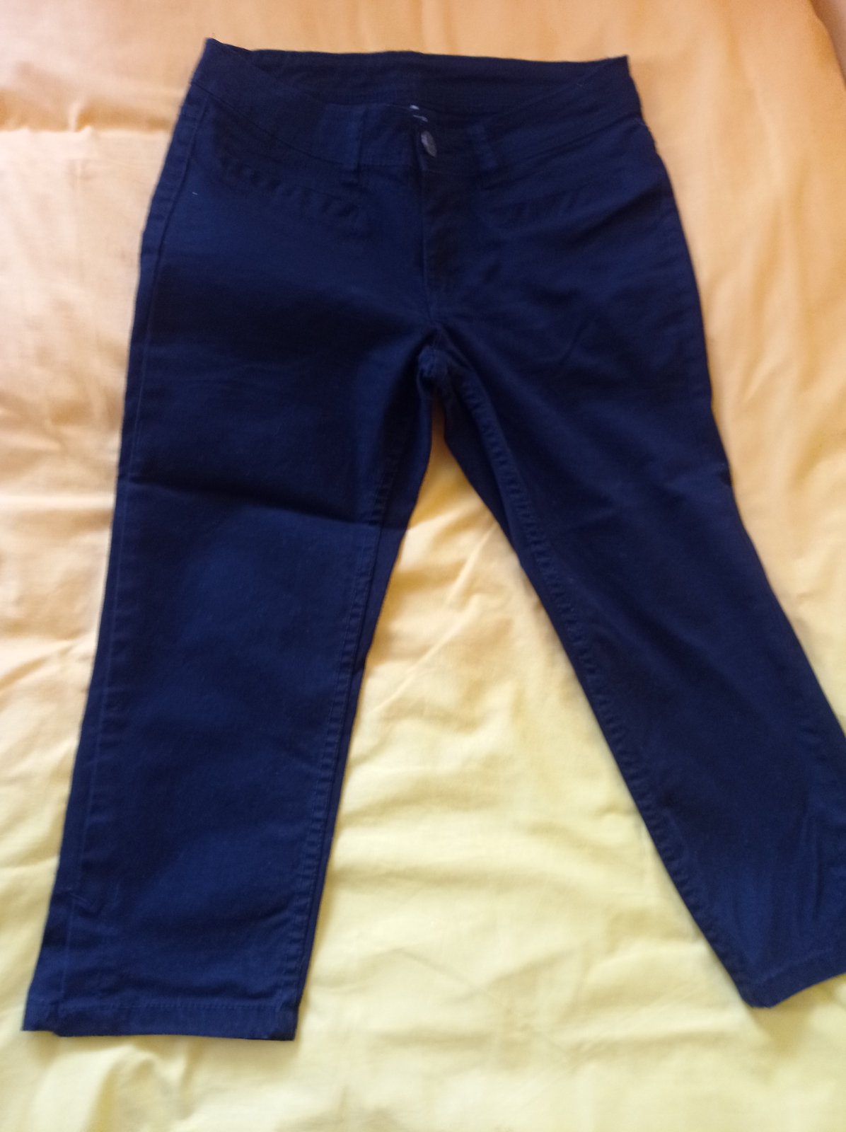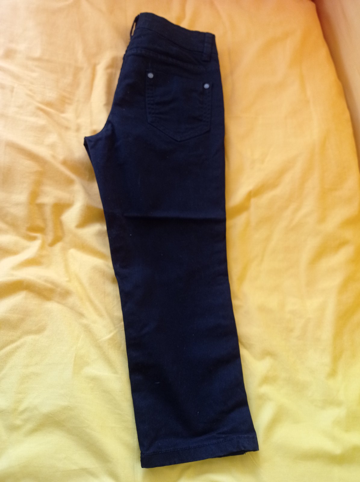 3/4 nohavice GAP veľkosť 34 Veľmi tenká vzdušná látka Pás 39cm, boky 46cm, predný sed 23cm, zadný sed 35cm, vonkajšia dĺžka 78cm, vnútorná dĺžka 58cm, obvod nohavice dole 18cm Cena 4€+ poštovné