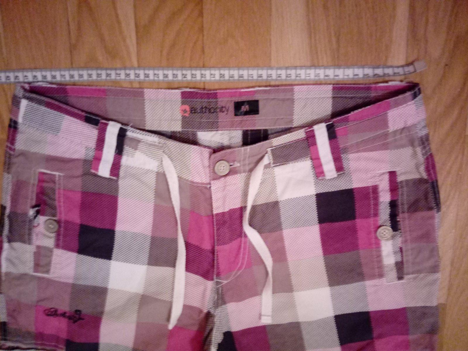 Nosené, no zachovalé kraťase na traky. Sú rolovaleľné, bez rolovania sú kúsok pod kolená. Farba je bledo hnedá, taká piesková. Veľkosť 33 Obvod pása 85 cm