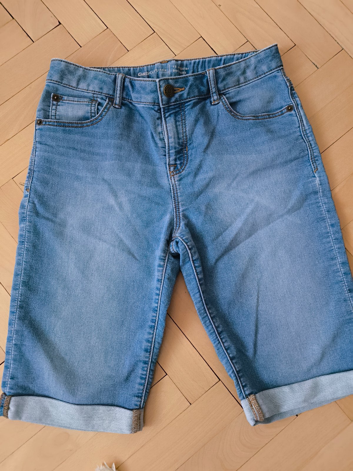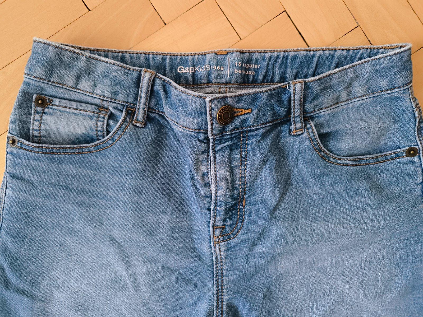 Predam riflove kratasy zn. Gap, velkost EU 14/zodpoveda c. 158, pas mozno regulovat gombikmi. Sirka v pase: 35cm, bocna dlzka: 27cm. Su jemne elasticke. Malo nosene, top stav.