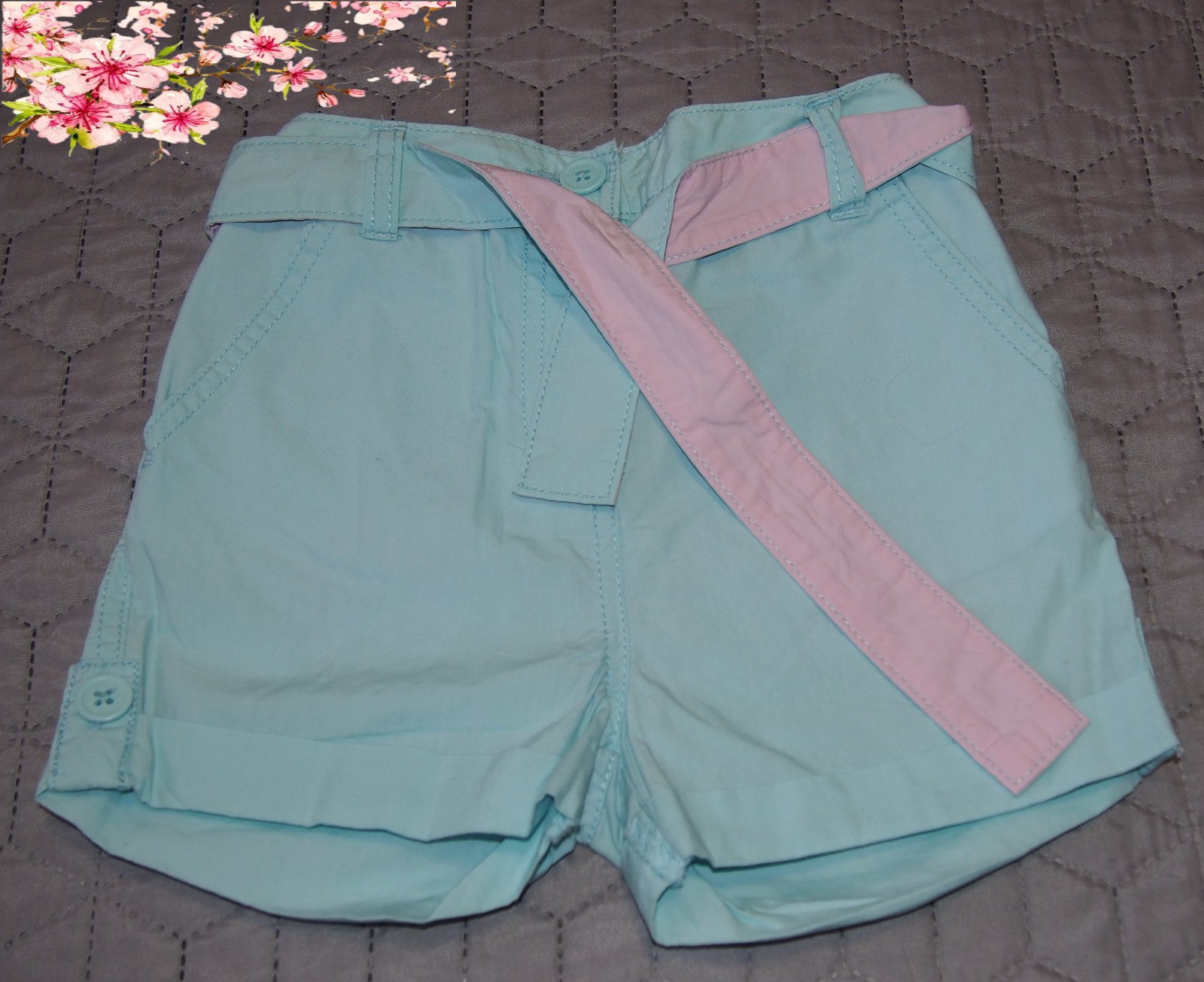 Stav - Šortky sú v dobrom nosenom stave. V páse je guma, šnúrka nie je funkčná.