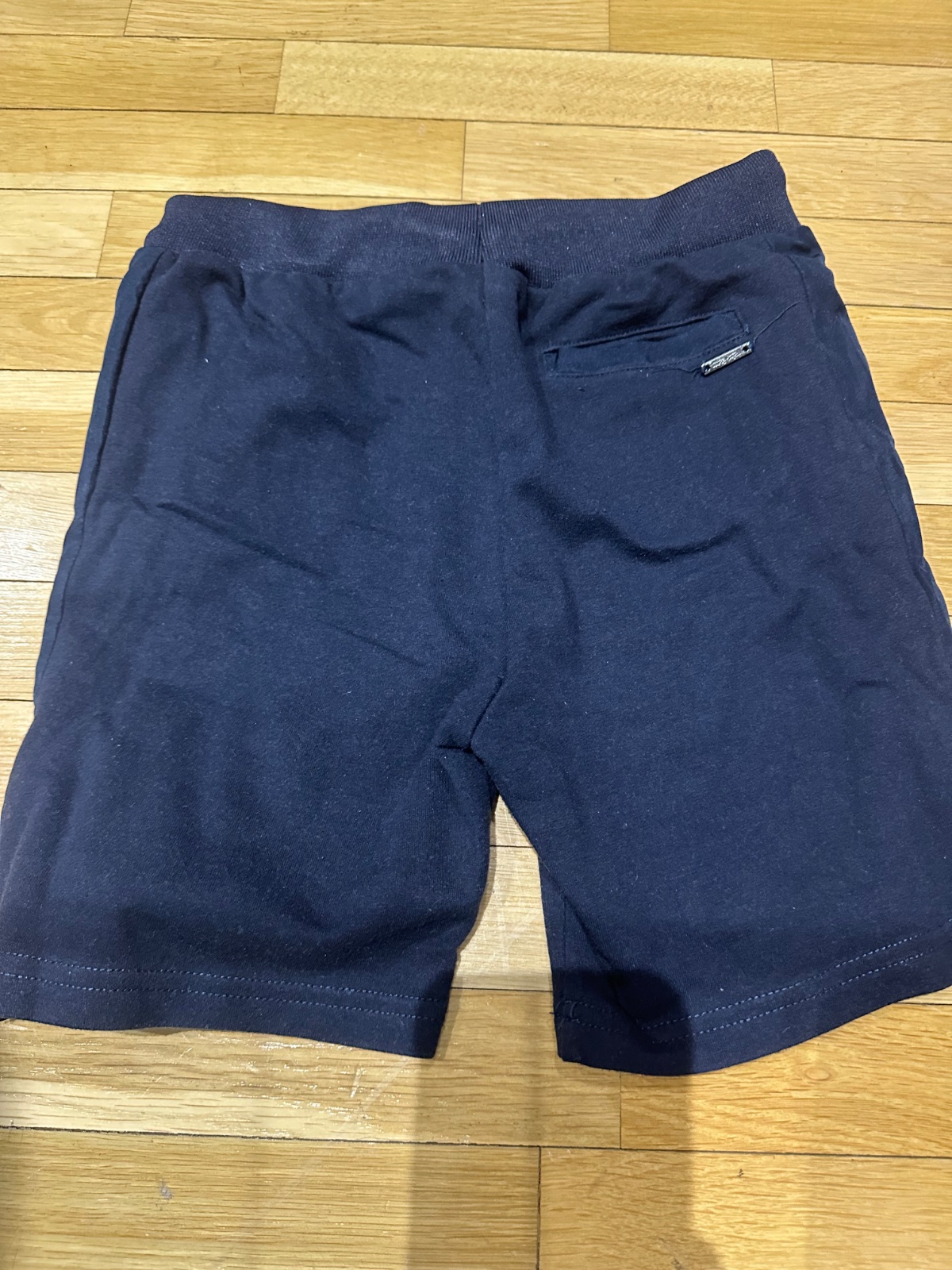 Zachovalé teplákové šortky, elastický pás + sťahovanie, falošný rázporok, dve bočné vrecká a jedno našité zadné vrecko. Zloženie: 99 % bavlna, 1 % elastan. Veľkosť: 122 (7 rokov).