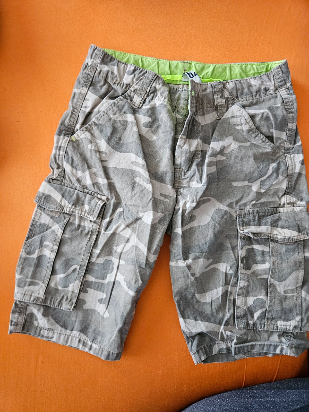 Nosené kraťase sú v dobrom stave. Je to tenšia rifľovina. Veľkosť píšu 152, ale môj syn s tou istou veľkosťou ich už neoblečie. Sú nepoškodené. Dĺžka 56 cm, v páse 36 cm.