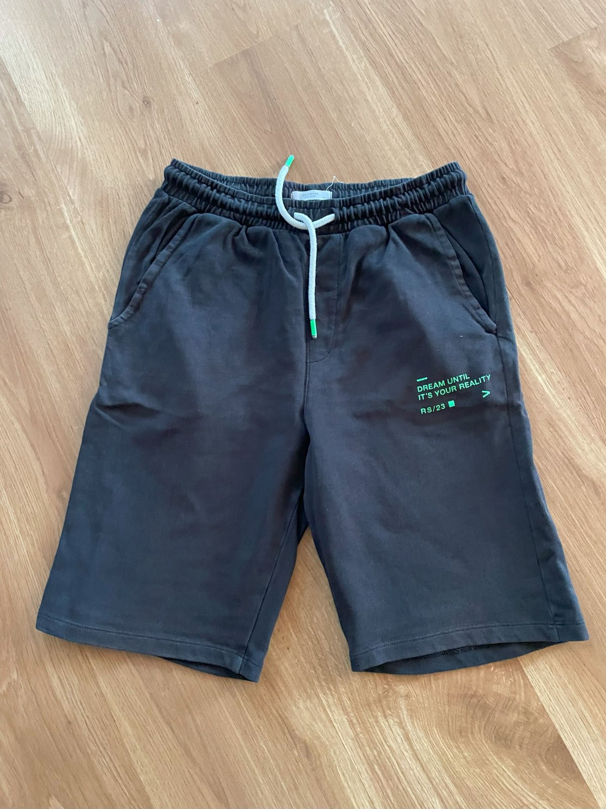Predam v nosenom stave bez dier a flakov teplakove kratasy, farba bledsia z prania, inak v pohode nositelne, dlzka cca. 51,5cm, pas v klude cca. 34cm