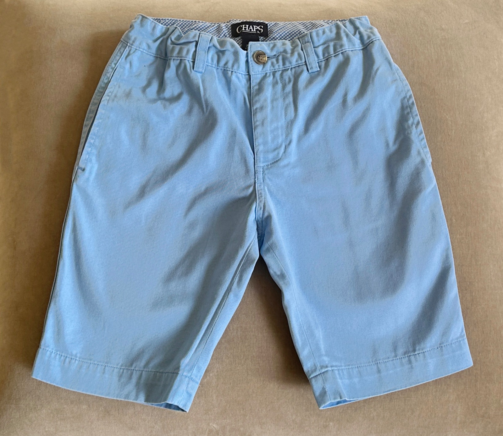 Mäkkulinké bavlnené šortky v klasickom strihu. Do pásu bola dodatočne vložená guma - je tam rezerva na uvoľnenie alebo utiahnutie. Pre vek 8 rokov. Vo veľmi peknom stave, bez poškodení.