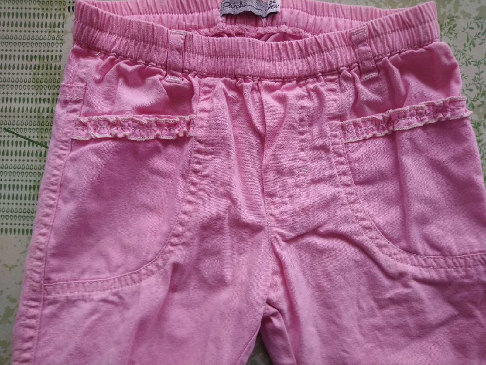 dievčenské ružové trištvťáky, v páse na gumu, vrecká,