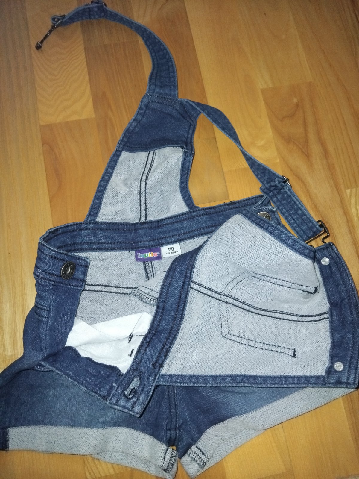 Predám tieto kraťasky na traky, značka Lupilu, sú z mäkkej a elastickej džínsoviny. Veľkosť 110, 4-5 rokov. Super na letné nekonečné šantenie. Vpredu majú 1 vrecko na hrudníku, 2 vrecká po bokoch a vzadu tiež 2 vrecká. Bežné opotrebenie po jednom dieťati, min.leto. Po stranách sú gombíky.