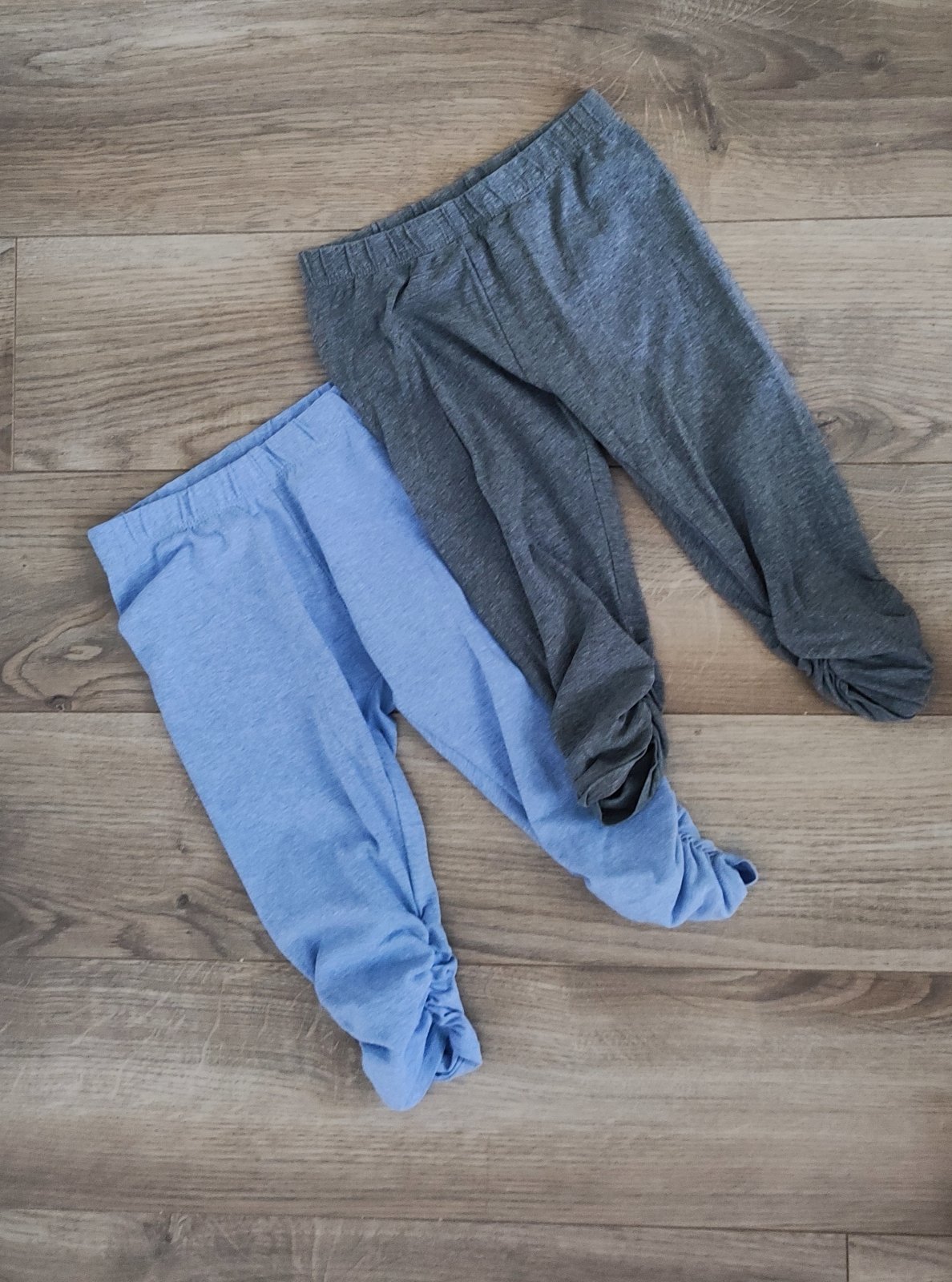 Legíny majú naspodu z bokov riasenie, sú pod kolená.