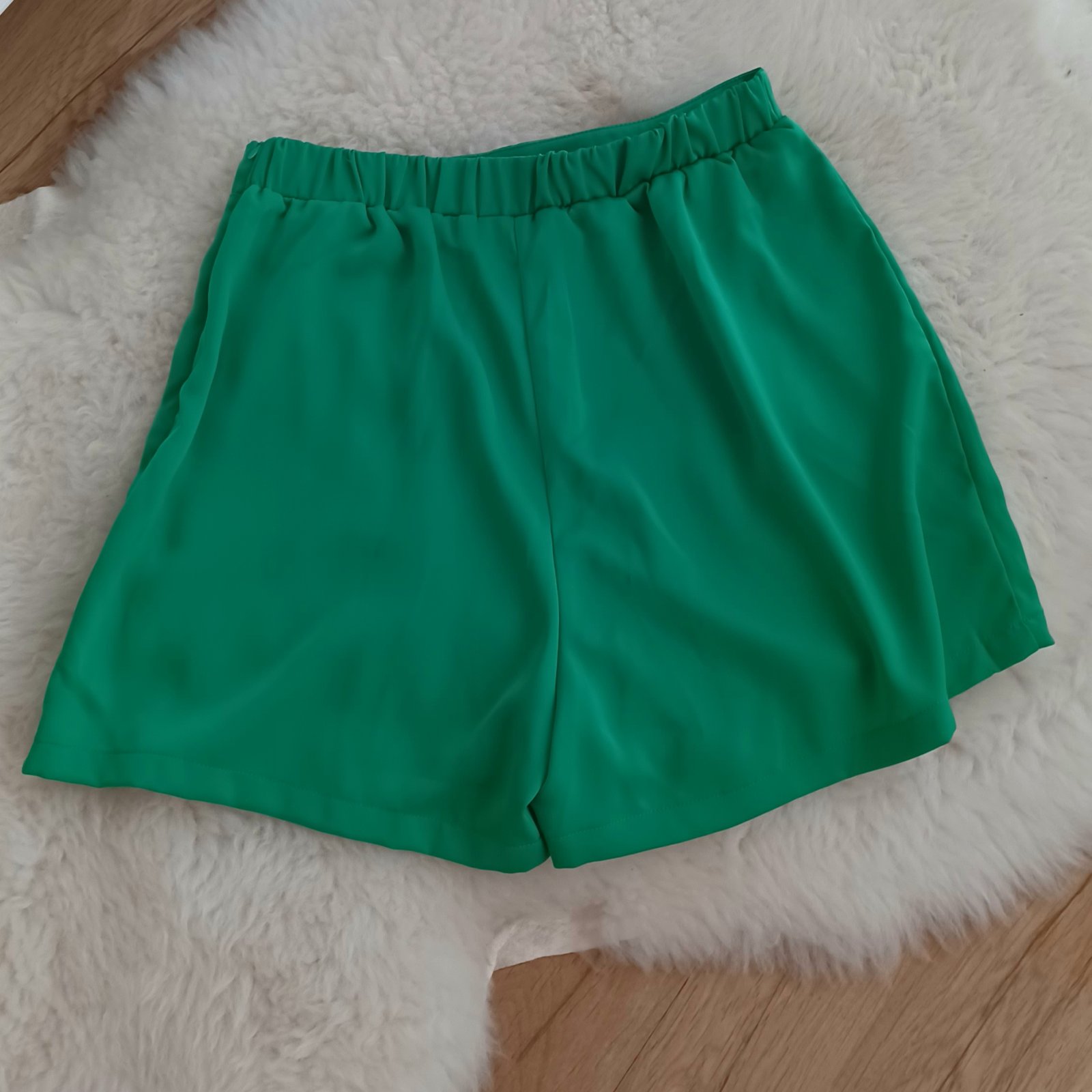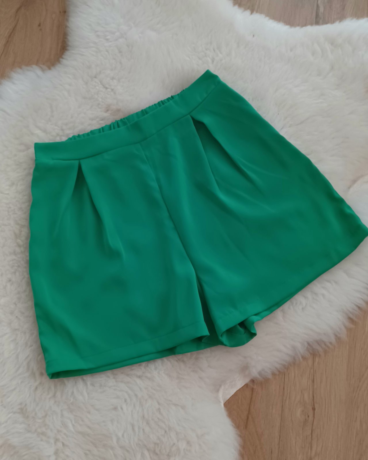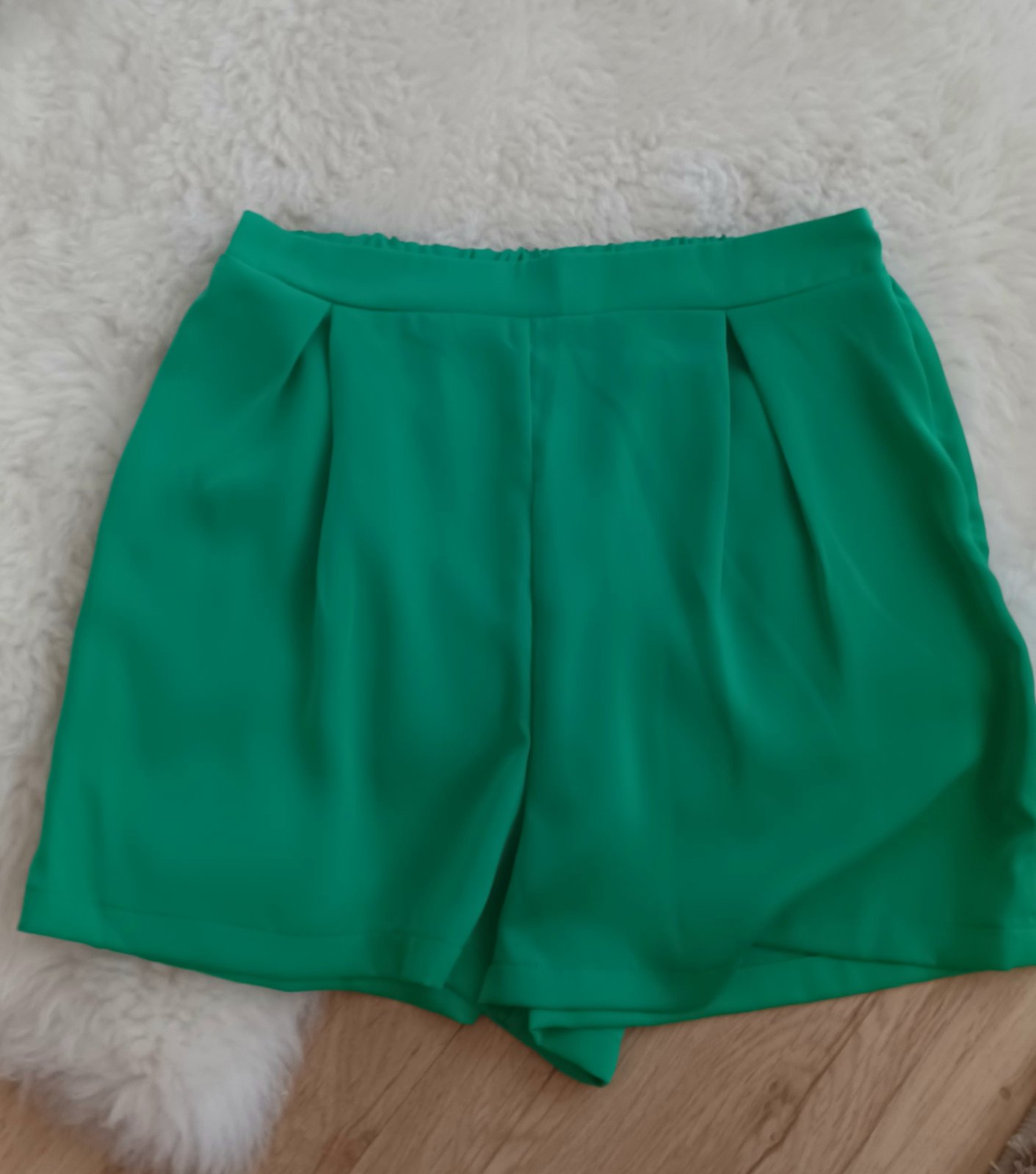 Predám dámske krátke nohavice farba je hráškovo zelená,látka je lahučká,padavá,lesklá Veľkosť S ,zn.Sinsay na páse guma na boku zips.100% stav.