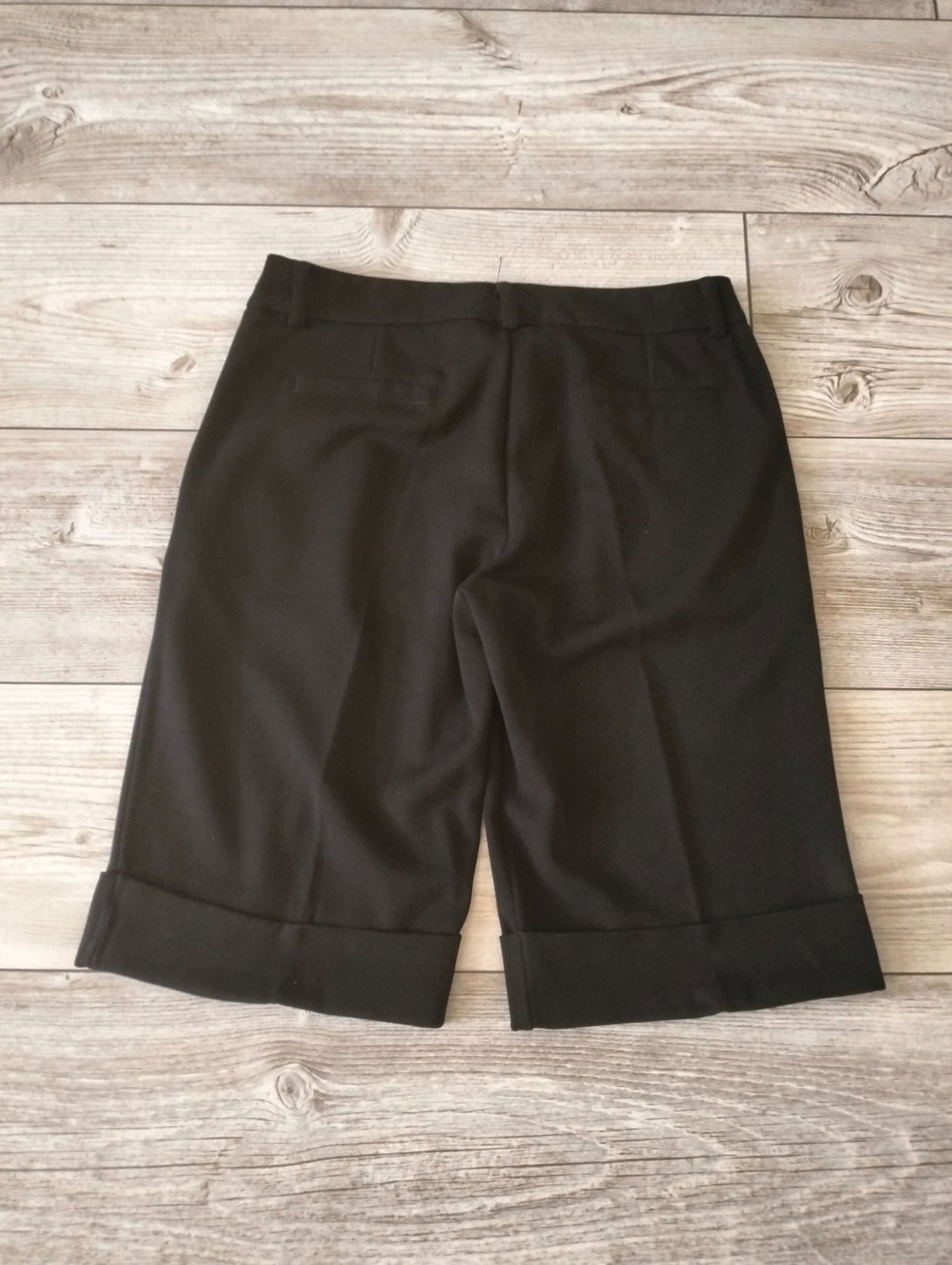 Bedrové 3/4 čierne nohavice s bielymi bodkami, párkrát oblečené