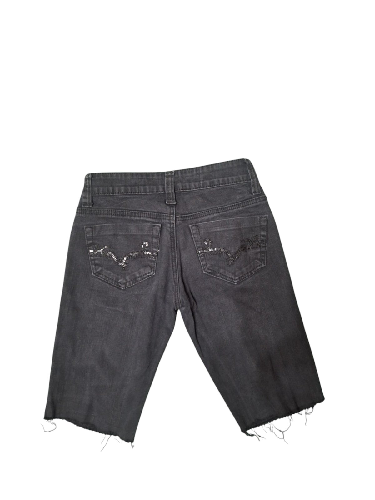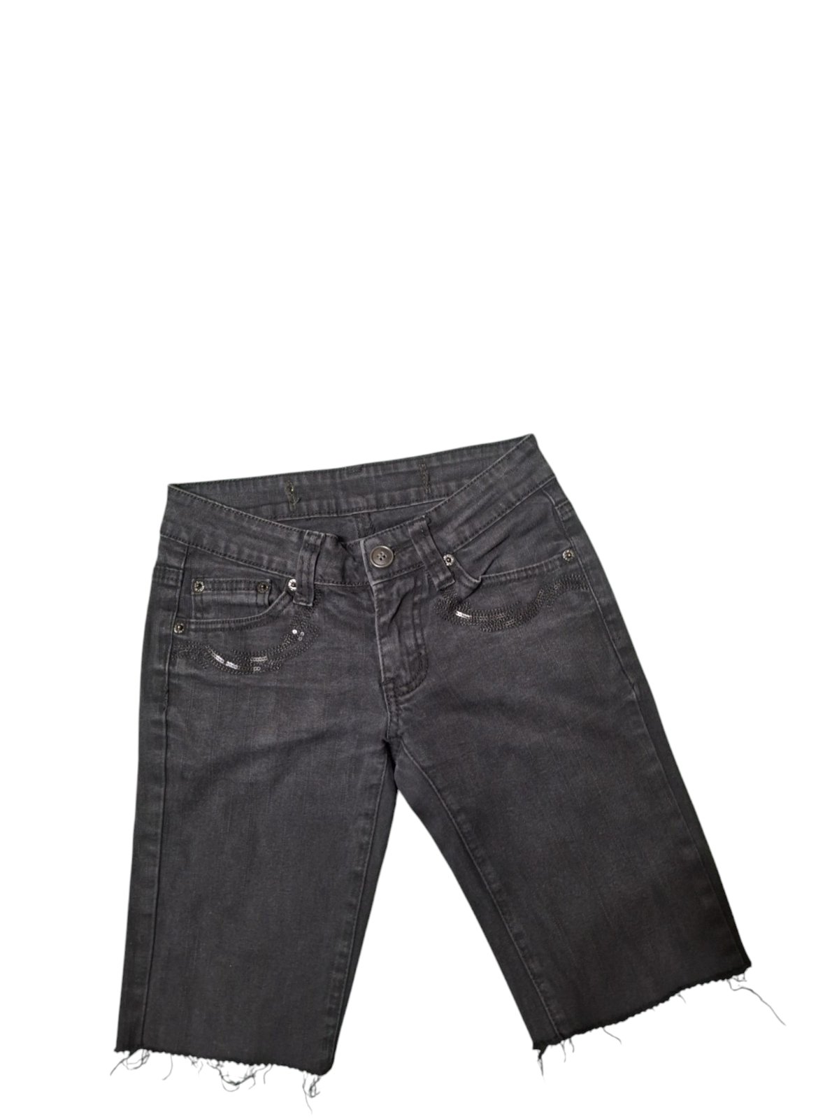 Dievčenské rifľové trištvrťáky. Zapínanie je vpredu na zips a gombík. Dĺžka je 45cm,obvod pása je 64cm a obvod bokov je 76cm. kód 1662