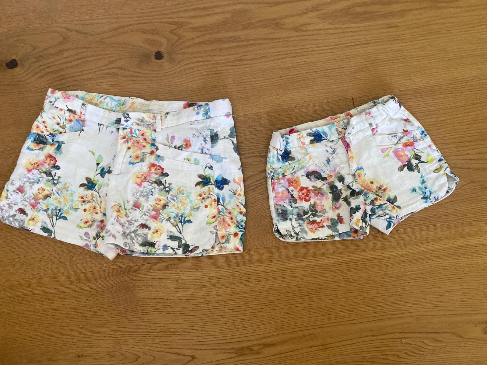 Kraťasy kvietkivane pre mamičku (12-13 rokov píšu ale ako S), a malé na 4-5 rokov , bez poškodení, cena za oboje