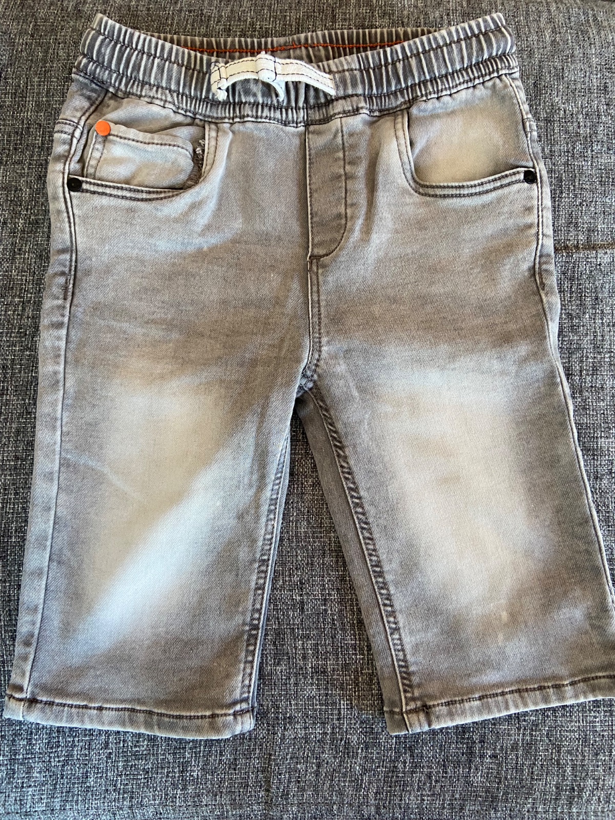 Kraťasy trištvrťové-mäkučká rifľovina,strečová.Veľ.128-pás:29cm,dĺžka-45cm,vhodné skôr pre štíhlych chlapcov.Top stav