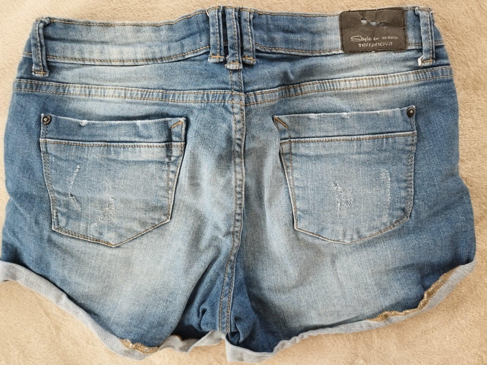 Raz oblečené riflové kraťasy písané M sedia asi aj S nakoľko sú na šnúrky viazanie.