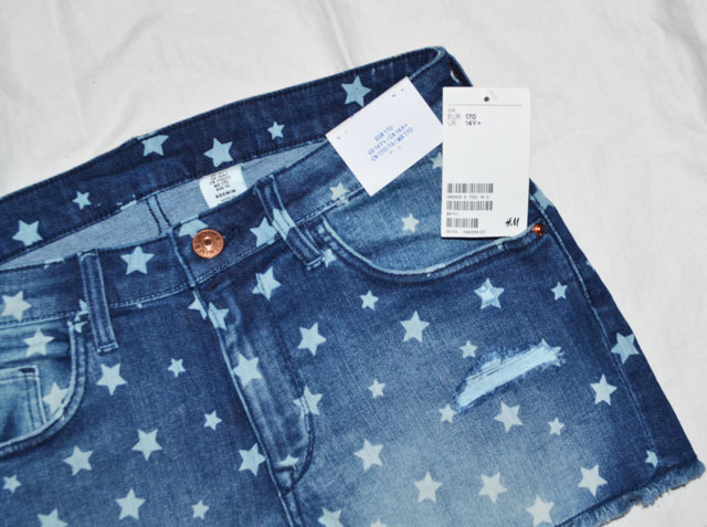 Letné kraťasky s hvezdičkami, nenosené, ešte s visačkami. pás v kľude 35 cm, D 26,5 cm