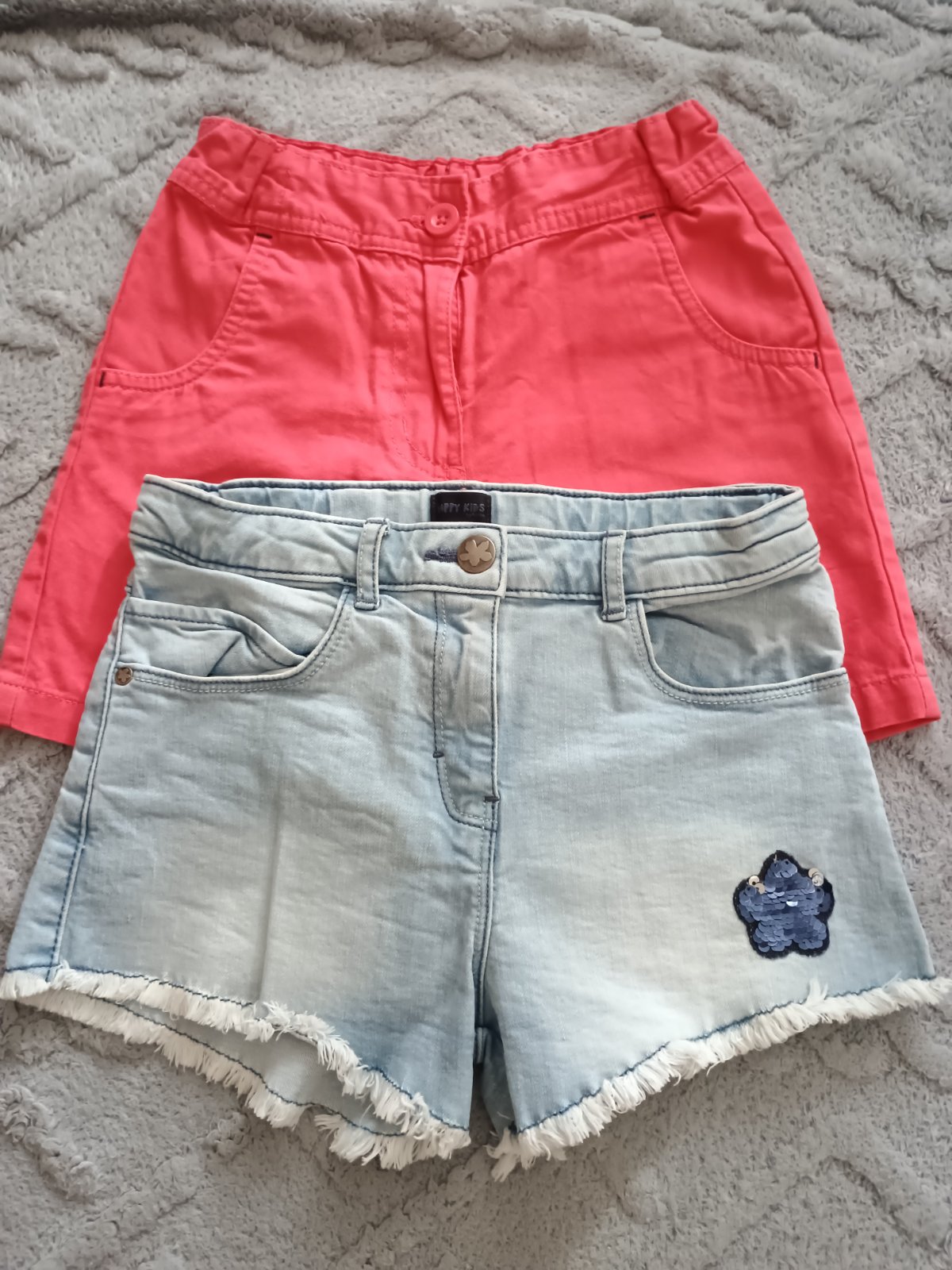 Dva kusy kraťasoch v.128, v ružovej a bledomodrej farbe,bez poškodenia