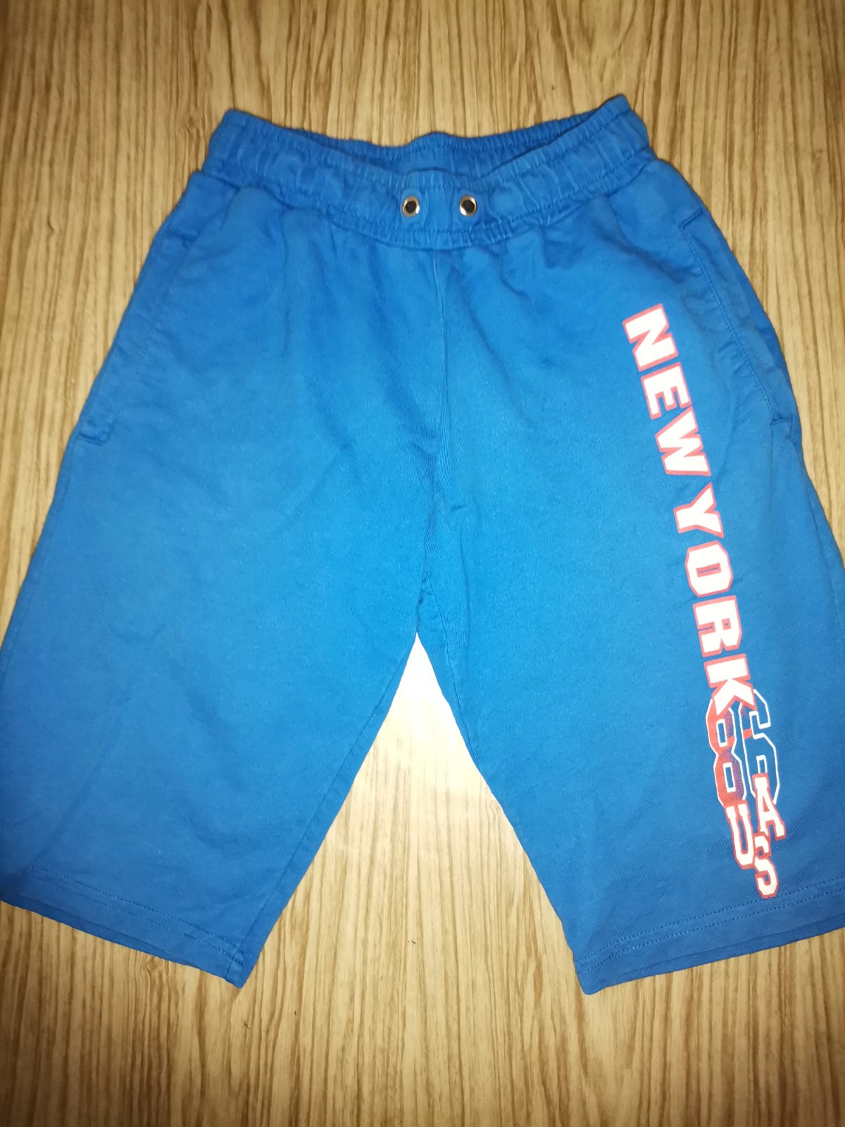 Ponúkam na predaj chlapčenské krátke nohavice veľ 140 na 10r. Vzadu pod vreckom je malilinká dierka. Je to zohľadnené v cene.