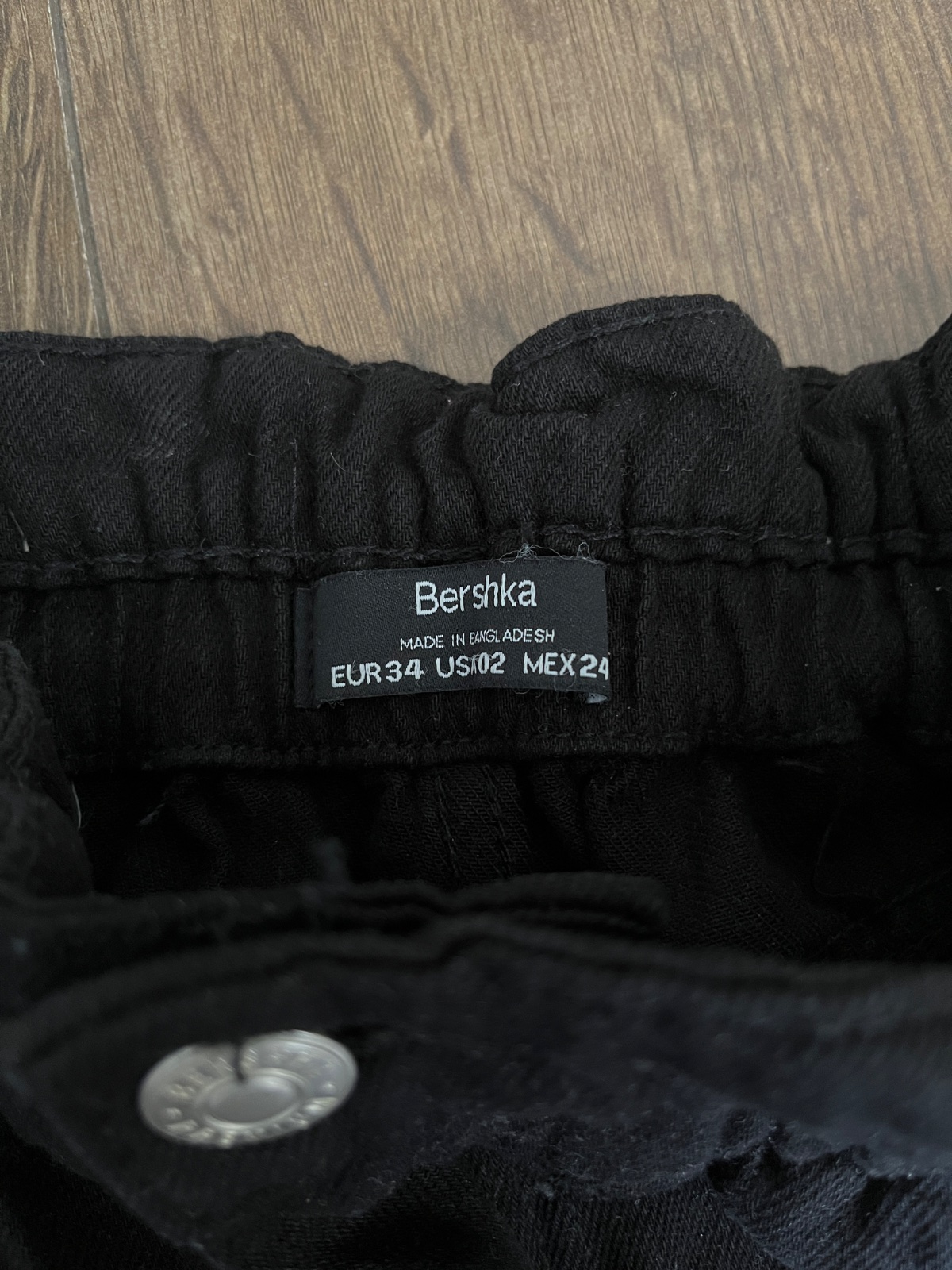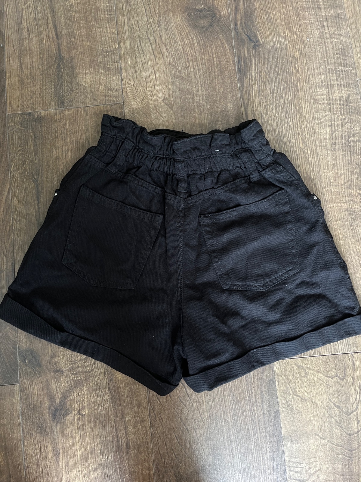Nenosené dámske rifľové kraťasy v čiernej farbe so širším, pohodlným strihom. Vyšší pás s jemným riasením, zapínanie na gombík a zips. Kraťasy majú vrecká a mierne ohrnutý lem, vďaka čomu pôsobia moderne a štýlovo.