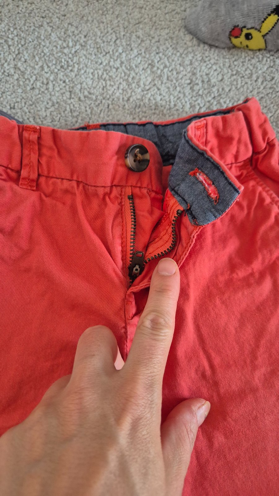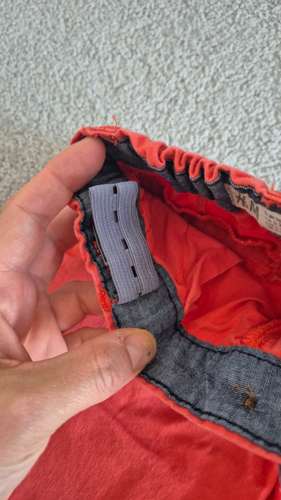Červene su na gombik a v pase sa dajú ešte stiahnut gumičkou.