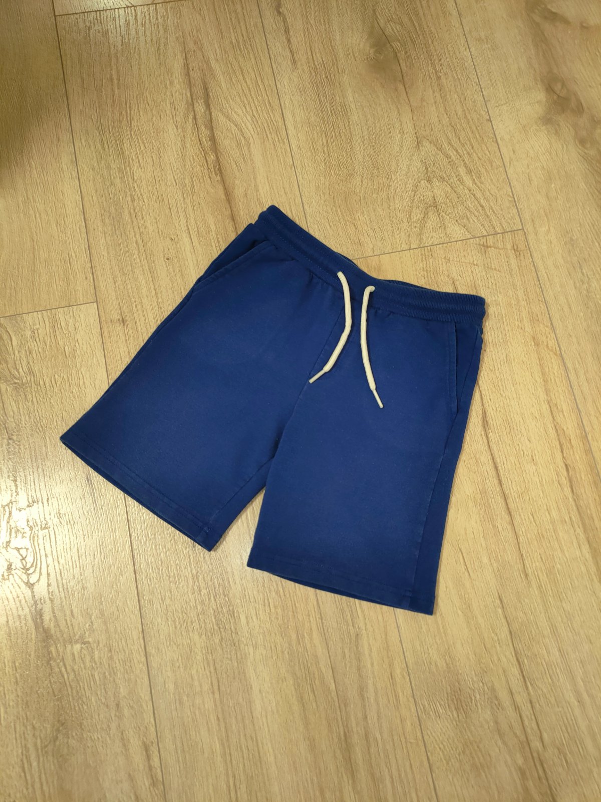 Zachovalé teplákové šortky, elastický pás + sťahovanie, falošný rázporok, dve bočné vrecká a jedno našité zadné vrecko. Zloženie: 99 % bavlna, 1 % elastan. Veľkosť: 122 (7 rokov).