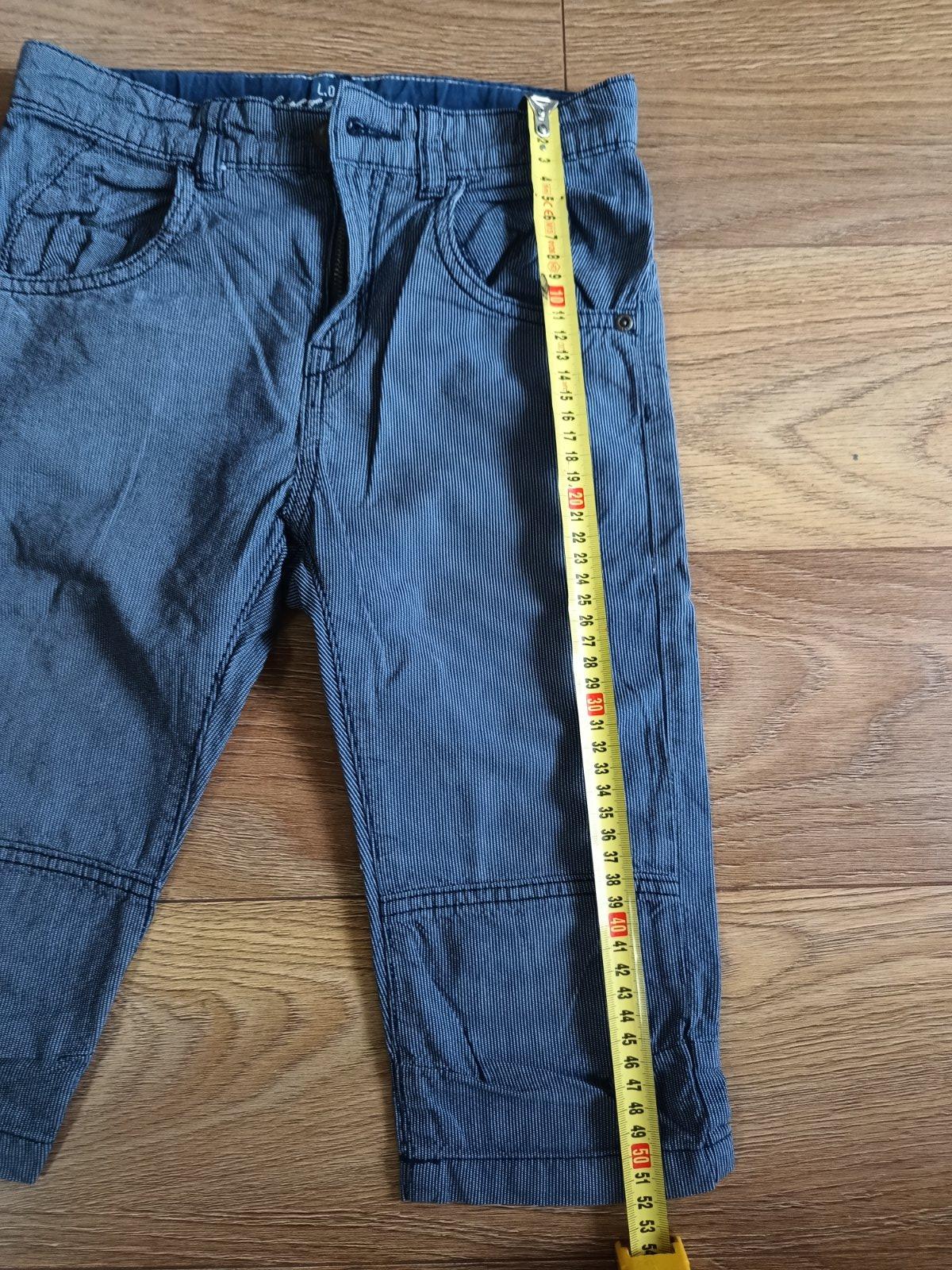 v dobrom nosenom stave, vzadu pri vrecku sú trošku vydraté - pozri foto, vpredu vydratie na vrecku je originál odnova, po mladšom synovi, vyzerajú frajersky, dĺžka je 49 cm, od rozkroku 28 cm a pás...