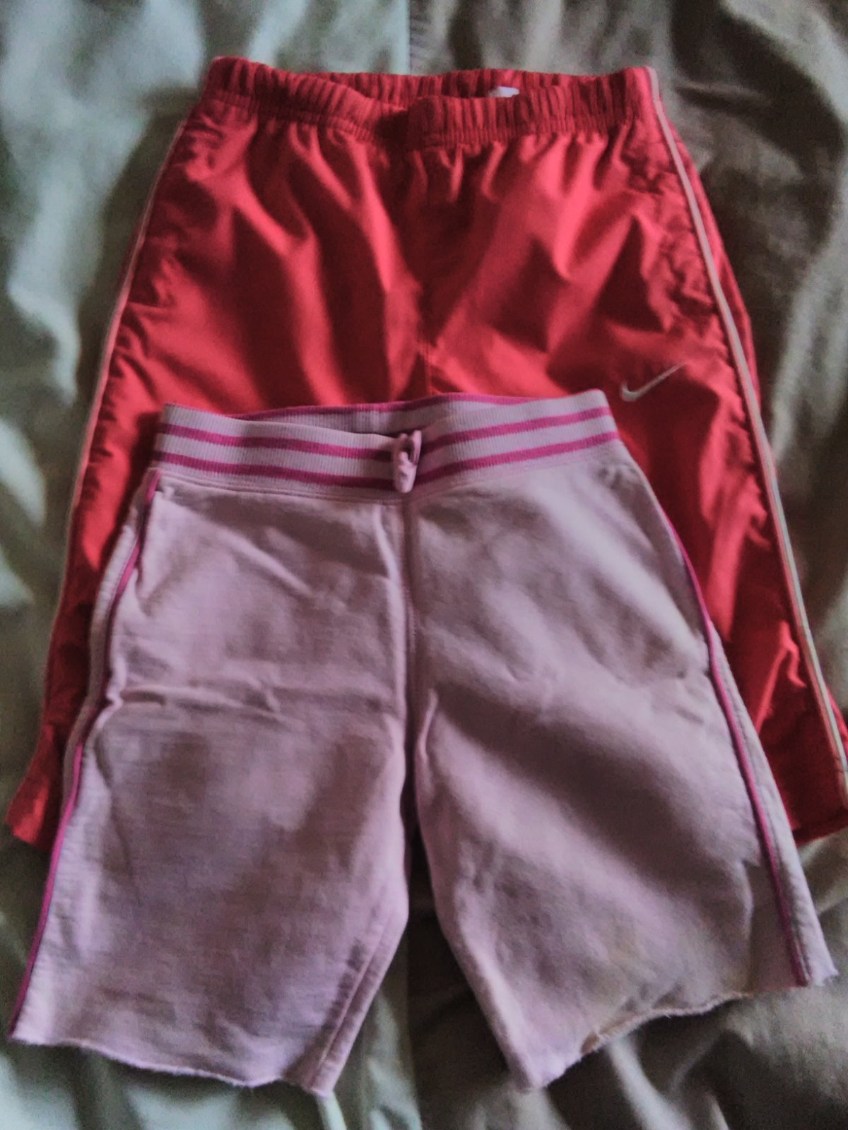2 kraťasy predám spolu alebo osobitne. Oranžové Nike veľkosť 104-110 na 4-5 rokov sustiakovy materiál. Druhé teplákové veľmi pohodlné dcérka rada nosila, značka Cherokee na 3-4 roky.