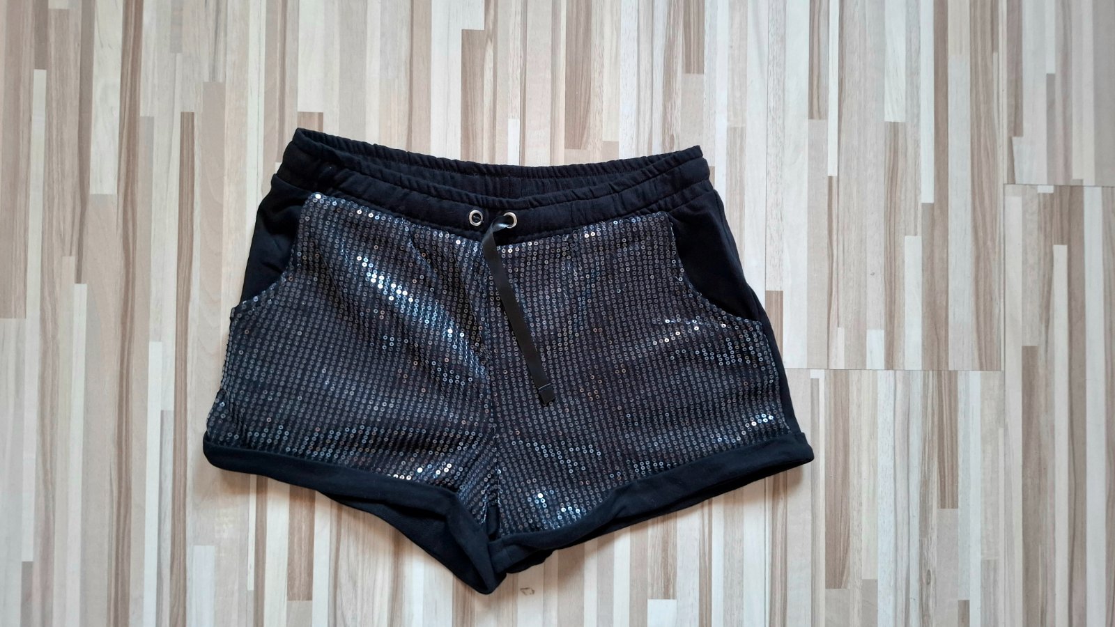 Predám nenosené dievčenšké bavlnené šortky s flitrami, 12/13 rokov.