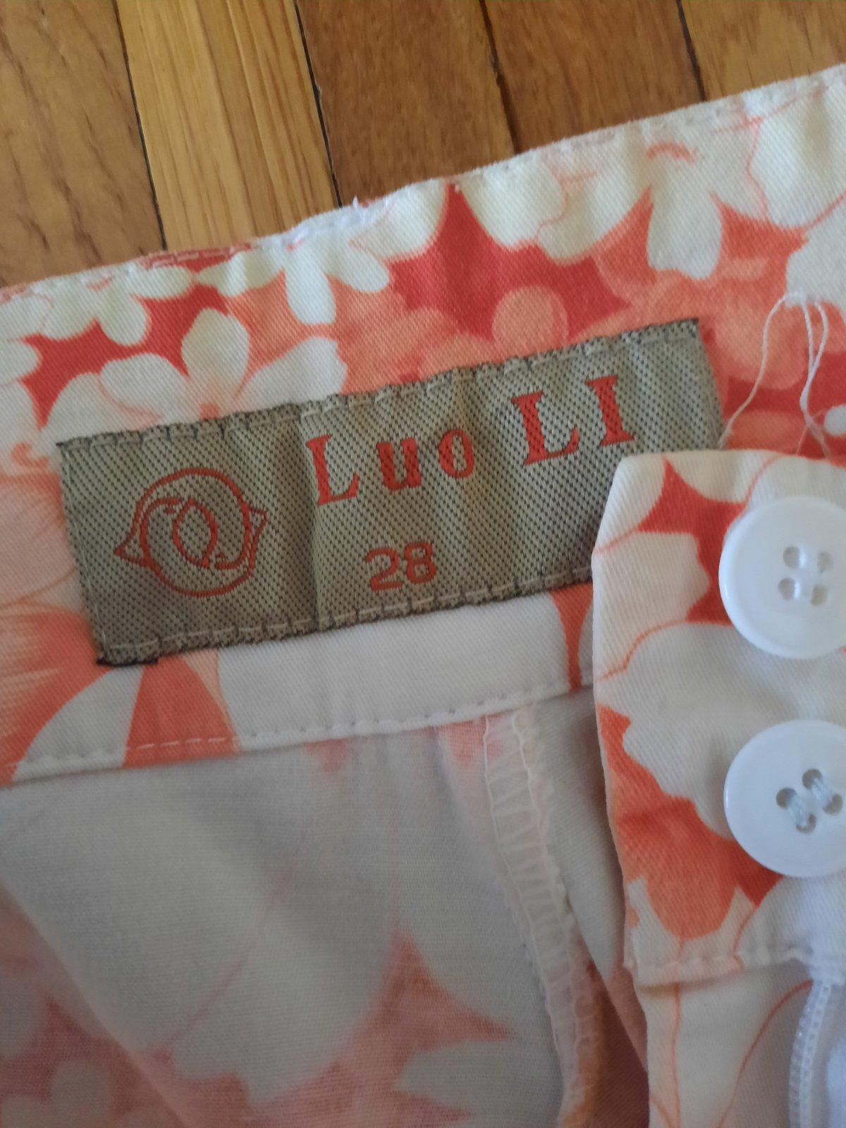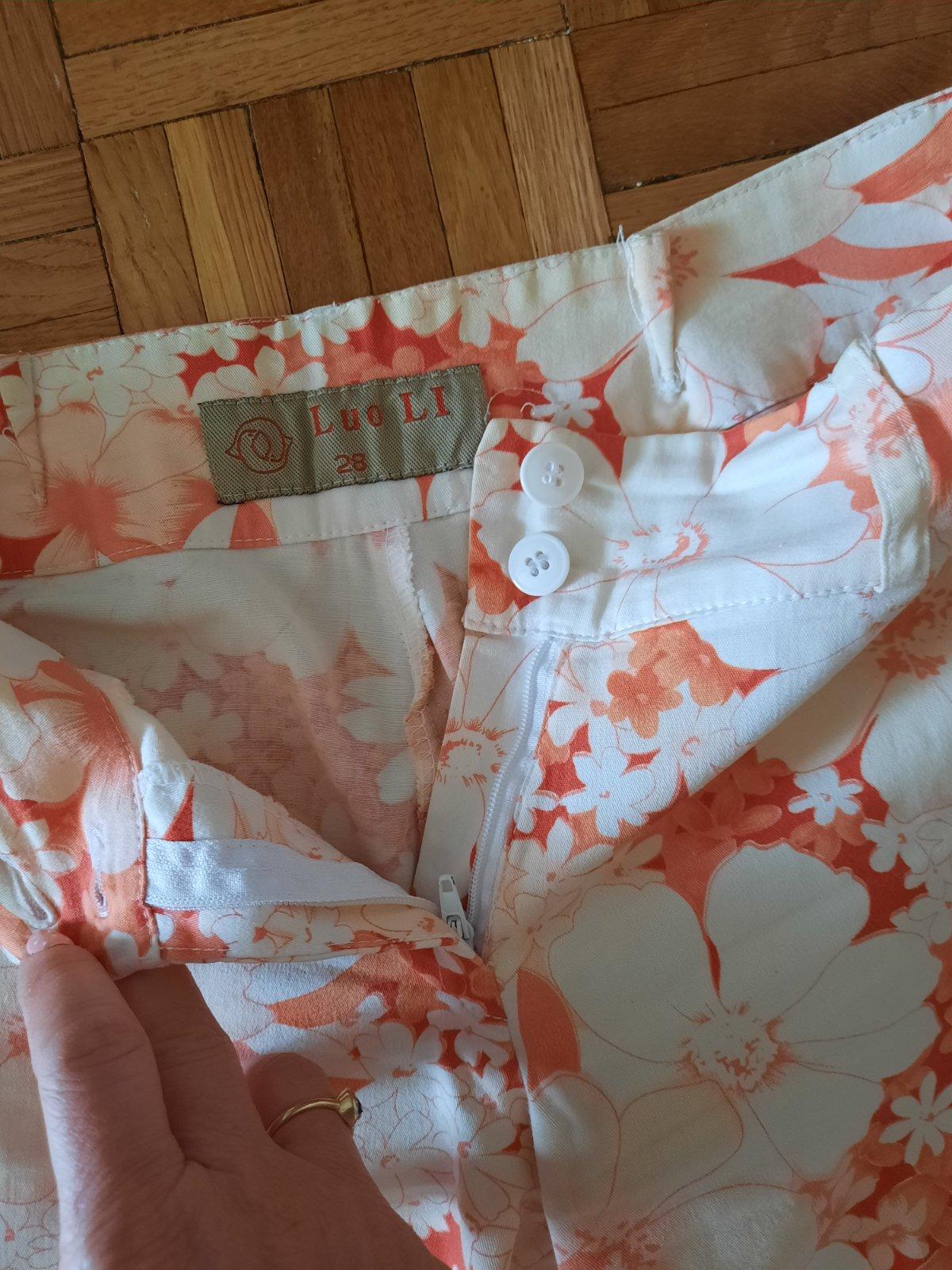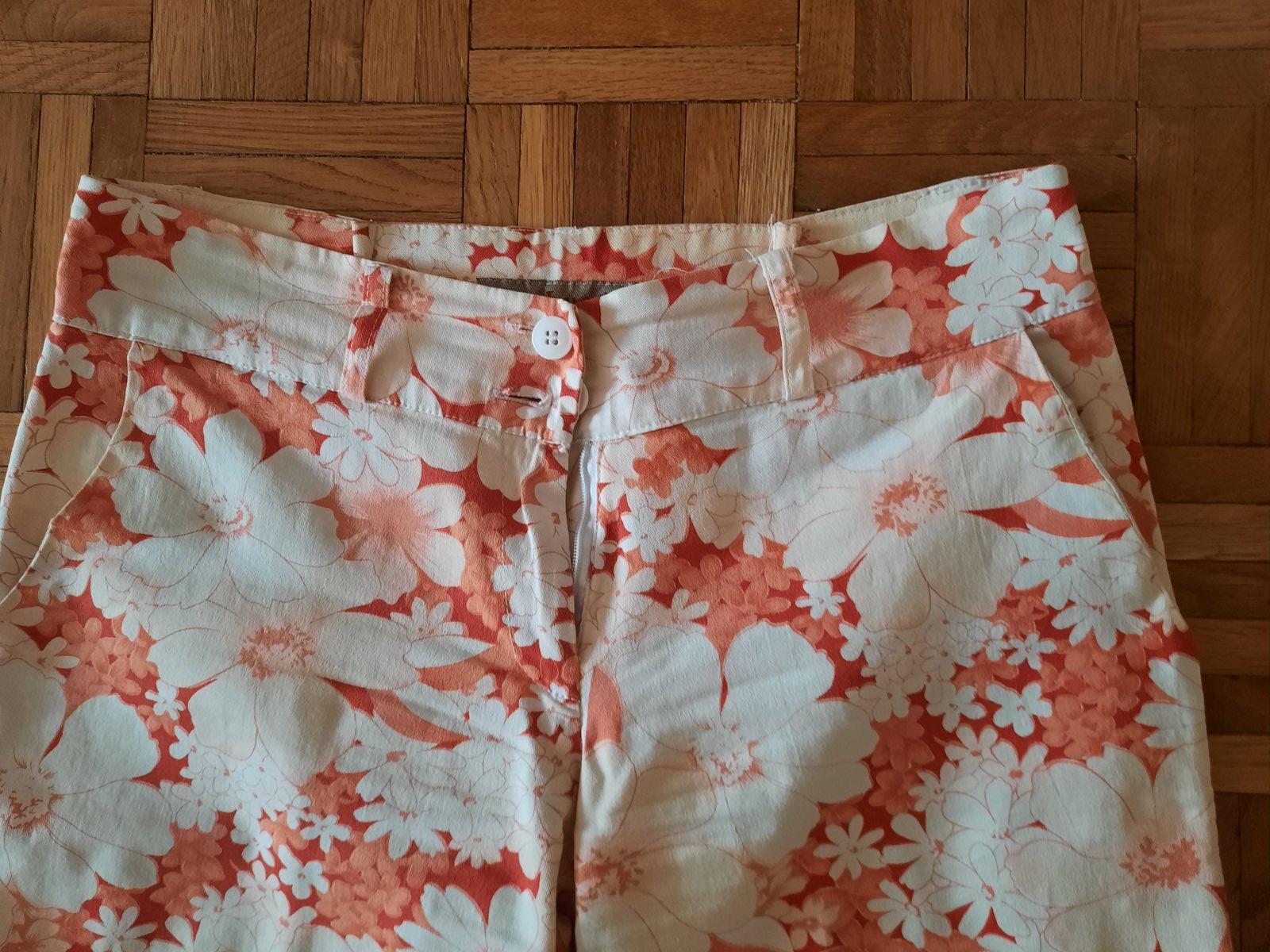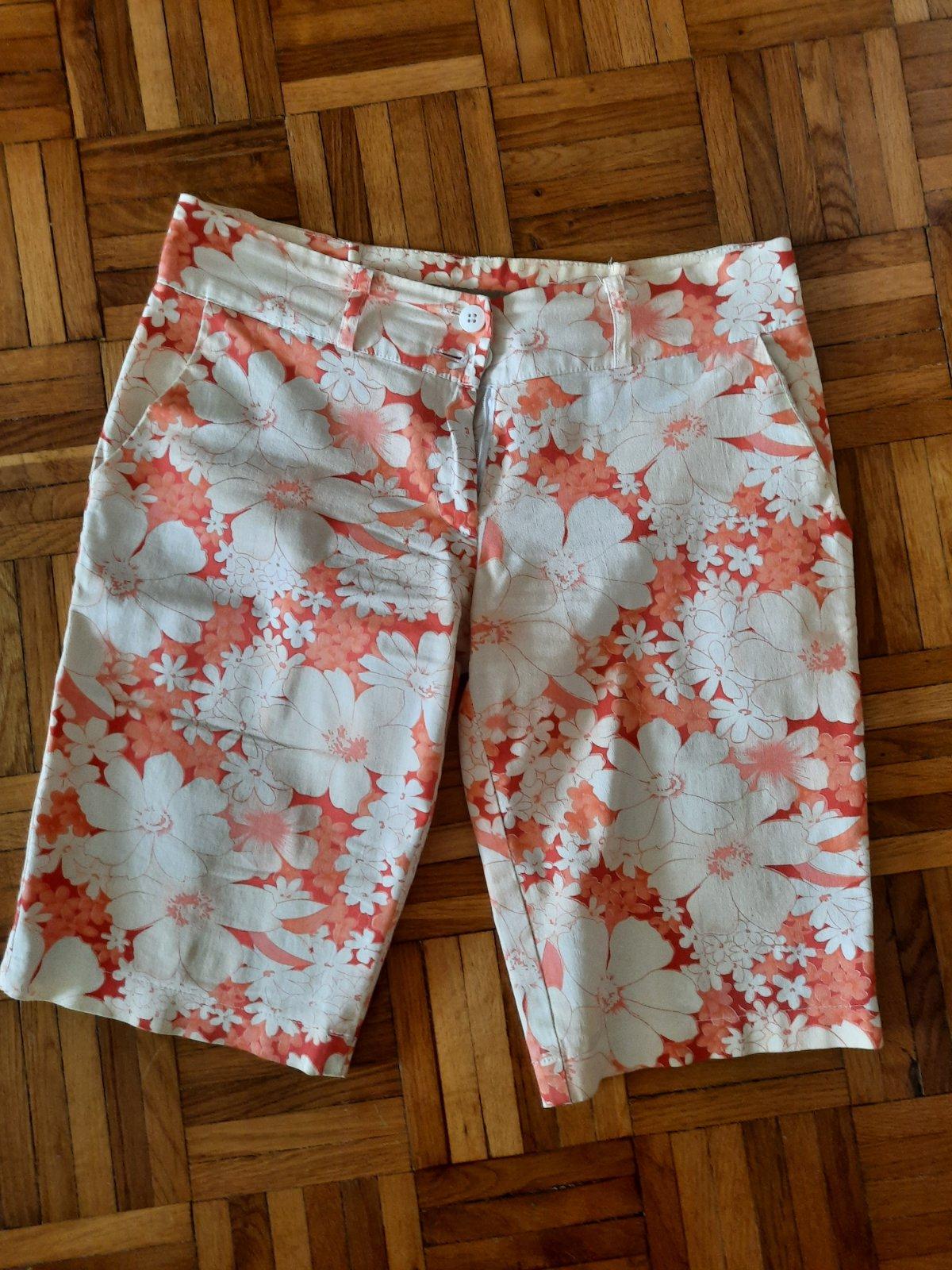 Veľmi pekné 3/4 nohavice/ bermudy. Bez poškodenia, vačky z boku. Farebná kombinácia je červená s maslovou.