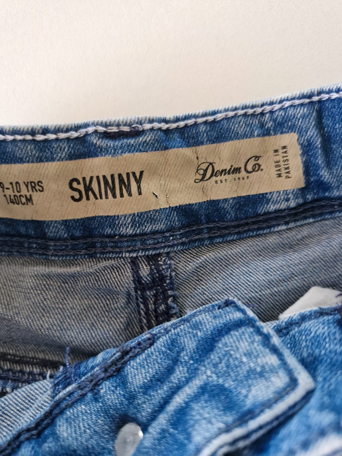 Riflove boli vpredu zohnute a ked sa to vyrovnalo vyzeraju ako špinave je to tak po prvom prani. Značka F&F. Šedé maju malú dierku vpredu značka h&M veľkosť 134 ale su dlhsie ako tie riflove. Cena ...