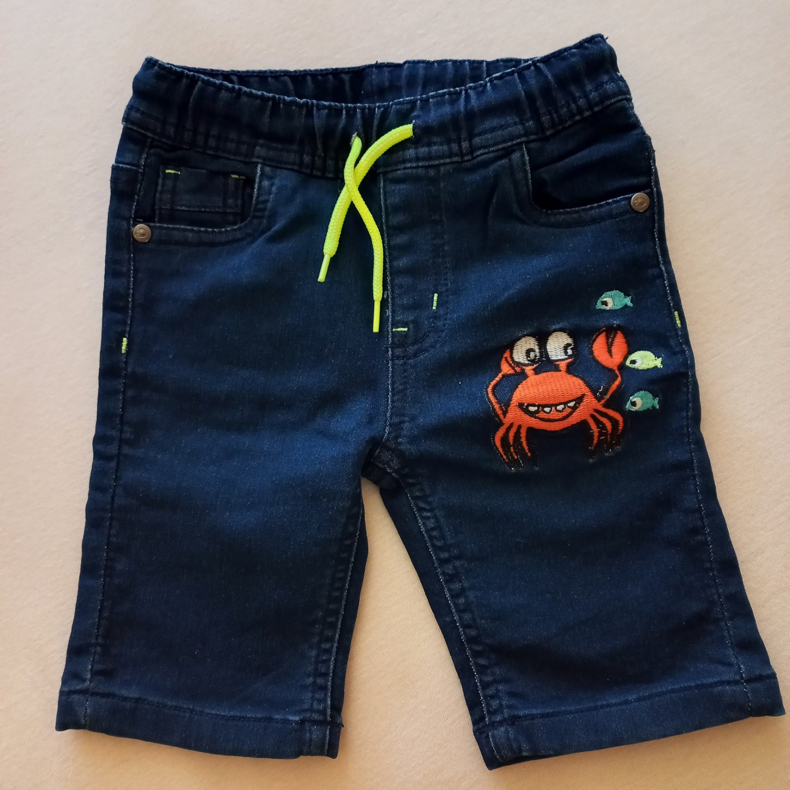 Predám riflove kratasky,velkost 92,su úplne nové,Iva opraté.nestihli sme využiť.je to natahovacia riflovina,takze su super. Cena 4€+posta