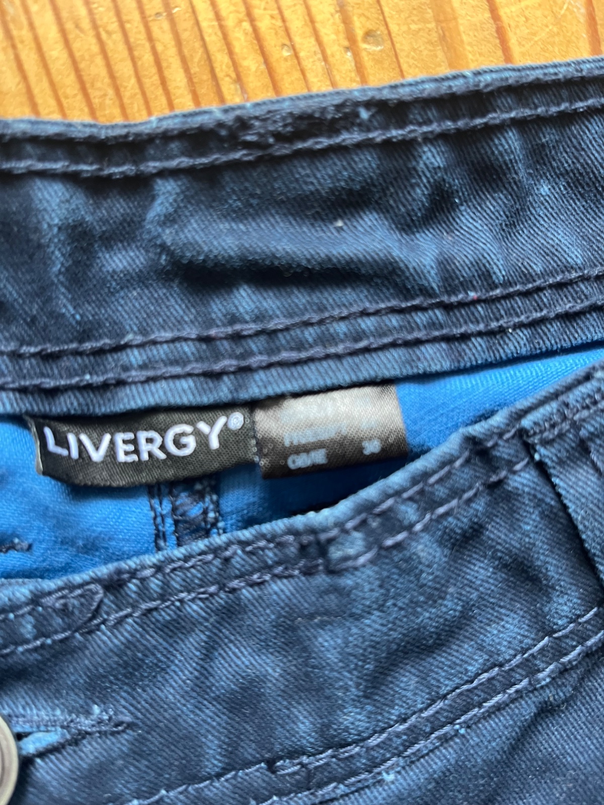tenká riflovina širši strih bez poskodenia šuchany efekt Rozmery : 56/29cm pas 50x2 boky 61x2 obv. stehna 34x2