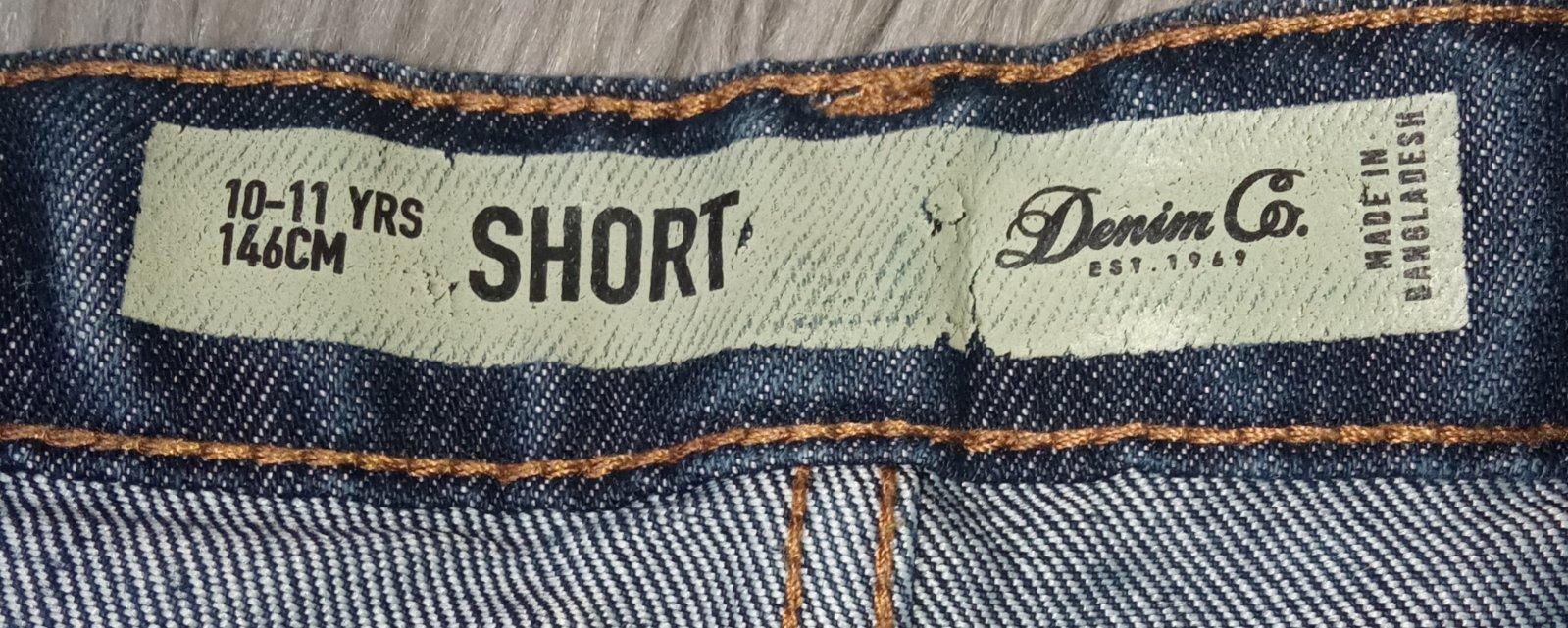 Chlapčenské denimové kraťasy, nastaviteľná guma v páse, dve bočné a dve zadné vrecká, nie sú elastické, materiál 59%bavlna,41%polyester.
