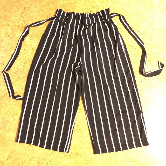 Letné prúžkované 3/4 nohavice s opaskom pre moletku. Rozmery: pás na gumu 2x 46-50cm, boky 2x 70cm, dĺžka 98cm.