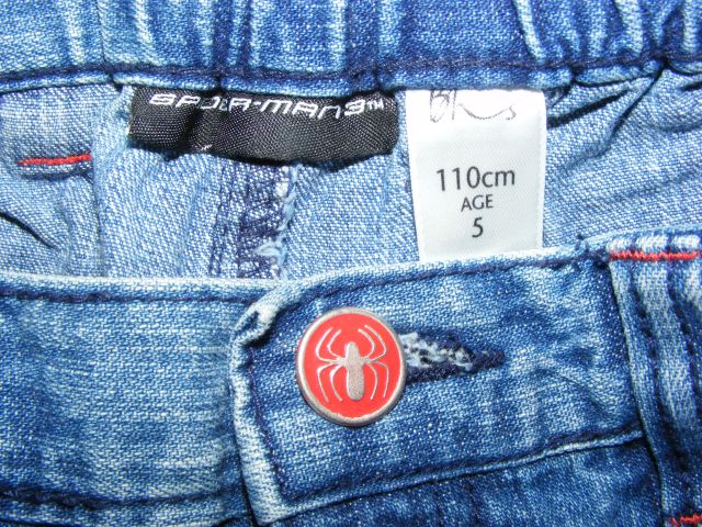Rifľové šortky - kraťasy - bermudy Spiderman zn. Bhs, kvalitná potlač vpredu aj vzadu na vreckách, klasické zapínanie, v páse guma, funkčné predné aj zadné vrecká. Materiál 100% bavlna.