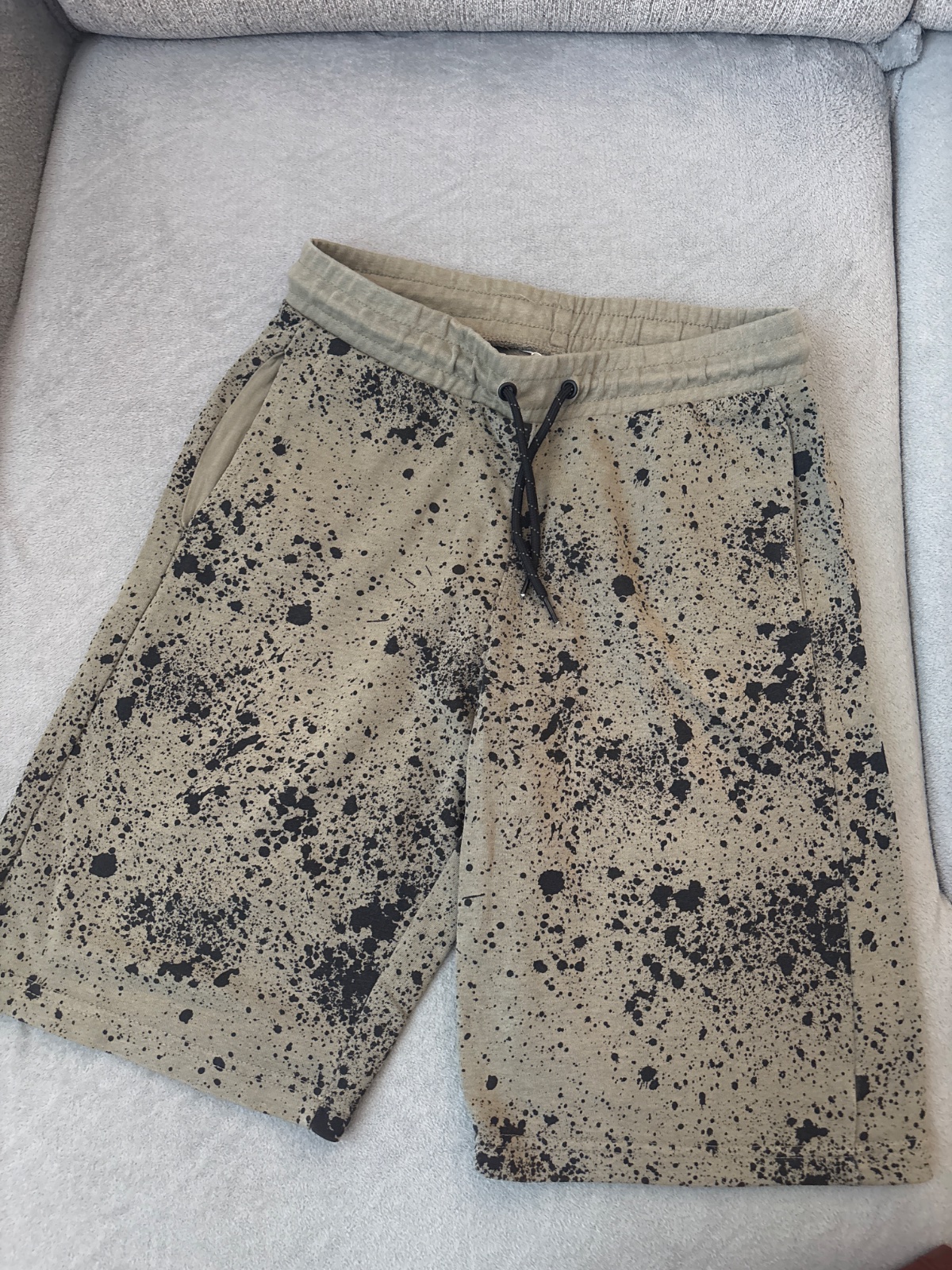 Predam ľahké kraťasy s potlačou na vek 13-14 rokov, 100% bavlna. Nastaviteľná guma v páse. Dlzka predný diel:53cm, zadný diel 58cm, obvod pása: 81cm, dlzka od pasu po rozkrok: 28cm