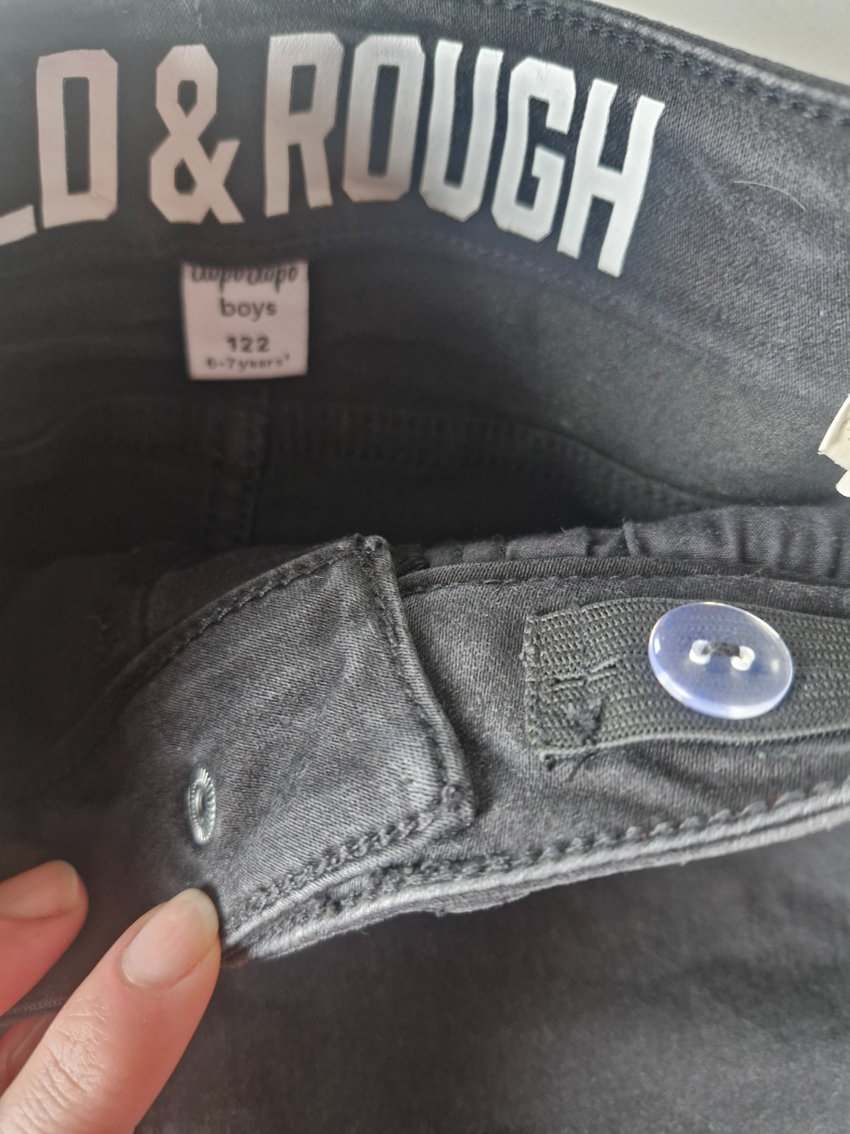 Farba taka čierno sivá.Pas na snurok a gumicku